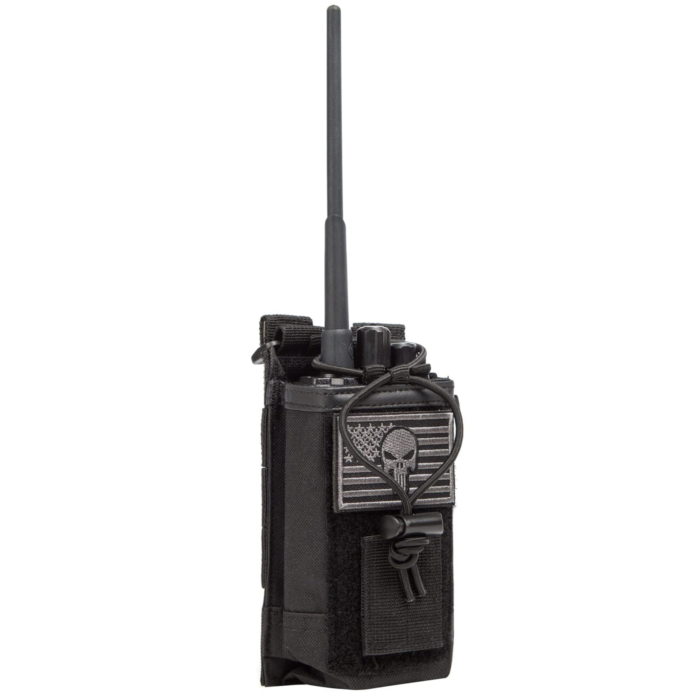 Radio Holder Radio Pouch Molle Radio Holster Tactical Radio Holder Radio Case Duty Belt Accessories Military Heavy Duty Radio Bag For Walkie Talkies Adjustable Storage With Patch(Punisher Skull Flag)