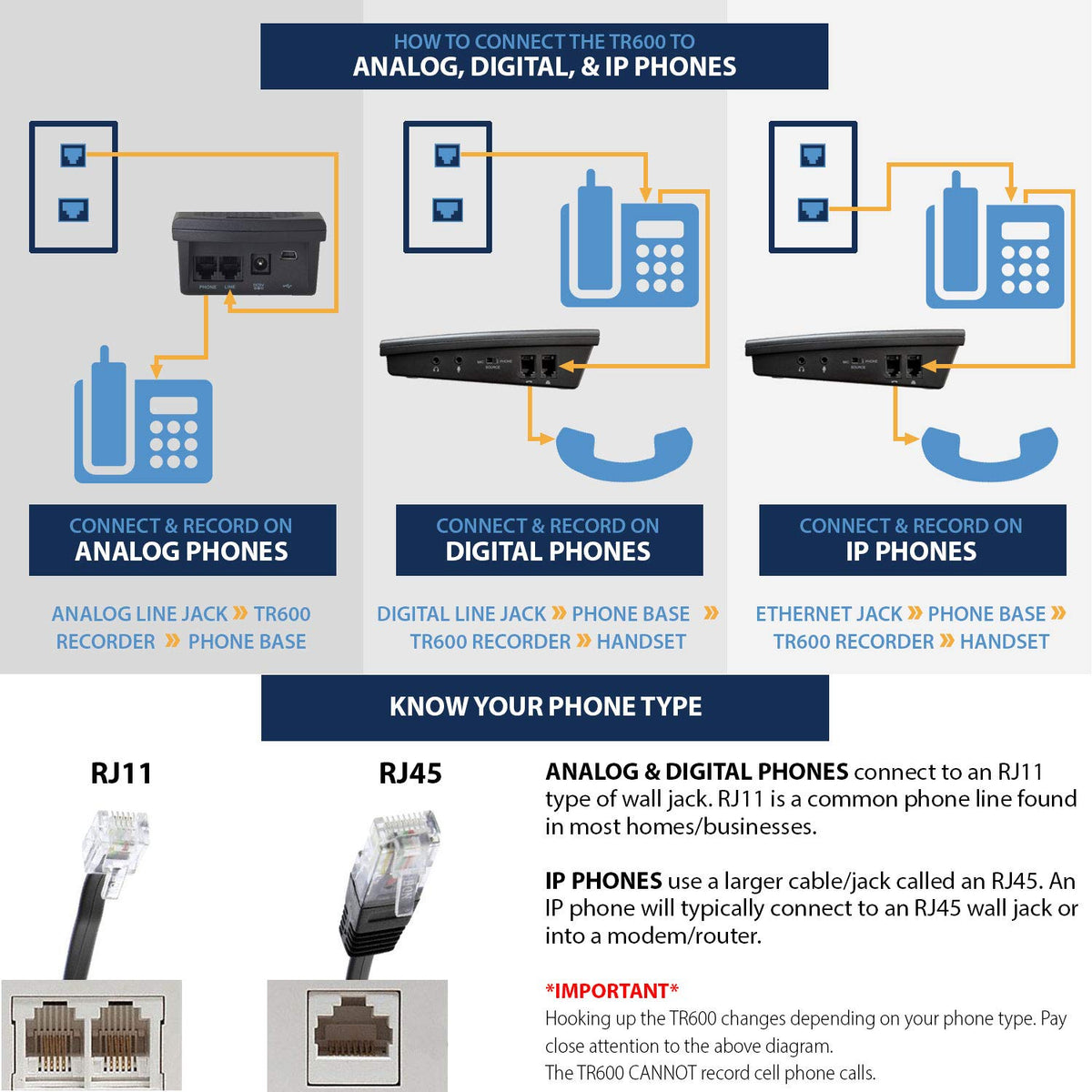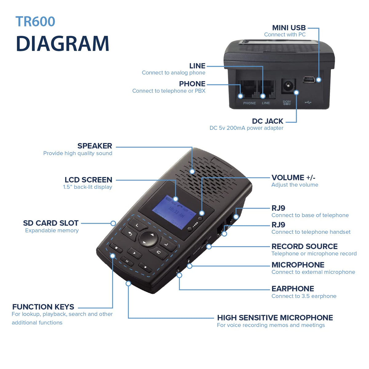 The Tr600 Telephone Call Recorder Will Record Calls On Any Analog, Ip, Or Digital Phone Lines Set The Phone Recorder It To Automatically Record When A Call Is Made Or Received Telephone Call Recordings Are Stored On The Included Removable Sd Card Calls Can Be Played Back On The Tr600 Phone Recording Device Itself Or You Can Remove The Sd Card And Playbackstore On Any Mac Or Windows Computer No Extra Software Is Required For Windows Users, The Call Assistant Software Enables You To Manage And Organize Your Recorded Calls The Tr600 Telephone Recording Device Is A Complete Stand Alone Phone Call Recorder Solution, It Does Not Require The Use Of A Computer Or Any Extra Software Setting Up The Telephone Recorder Takes Less Than 5 Minutes And Then It Essentially Runs On Autopilot (When Phone Calls Are Set To Automatically Record) The Timedate Of Each Recorded Call Is Displayed On The Lcd Screen Of The Device Alternately Each File On The Sd Card Is Organized In Chronological Order And Stamped With The Timedate The Loop Feature Ensures That Landline Call Recording Is Never Stopped Due To A Full Memory Card When The Memory Fills Up, The Newest Calls Are Recorded Over The Oldest Calls On The Sd Card The Phone Number Of Incoming Calls Is Displayed On The Tr600 Phone Call Recorders Lcd Screen (The Phone Line Must Have Caller Id) Not Only Is It A Landline Call Recorder But It Can Also Be Used As A Voicemeeting Recording Device