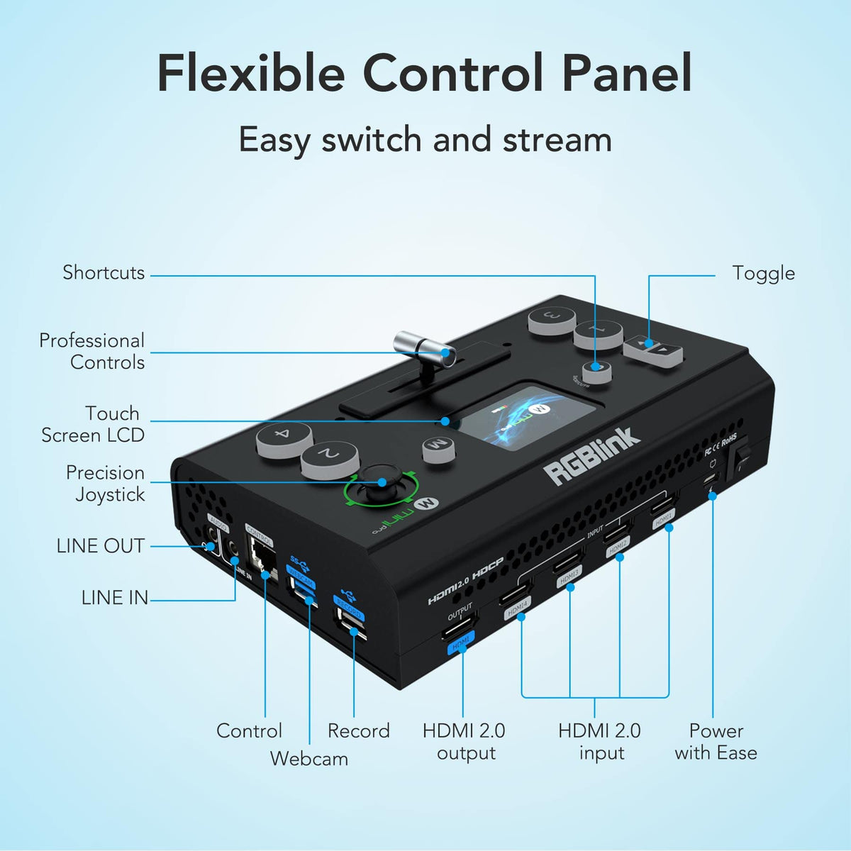 Rgblink Mini Pro Video Switcher With 4 X 4K Hdmi Inputs 1Hdmi/Usb3.0 Outputs Multi Camera Video Mixer Switcher With 2 Inch Touch