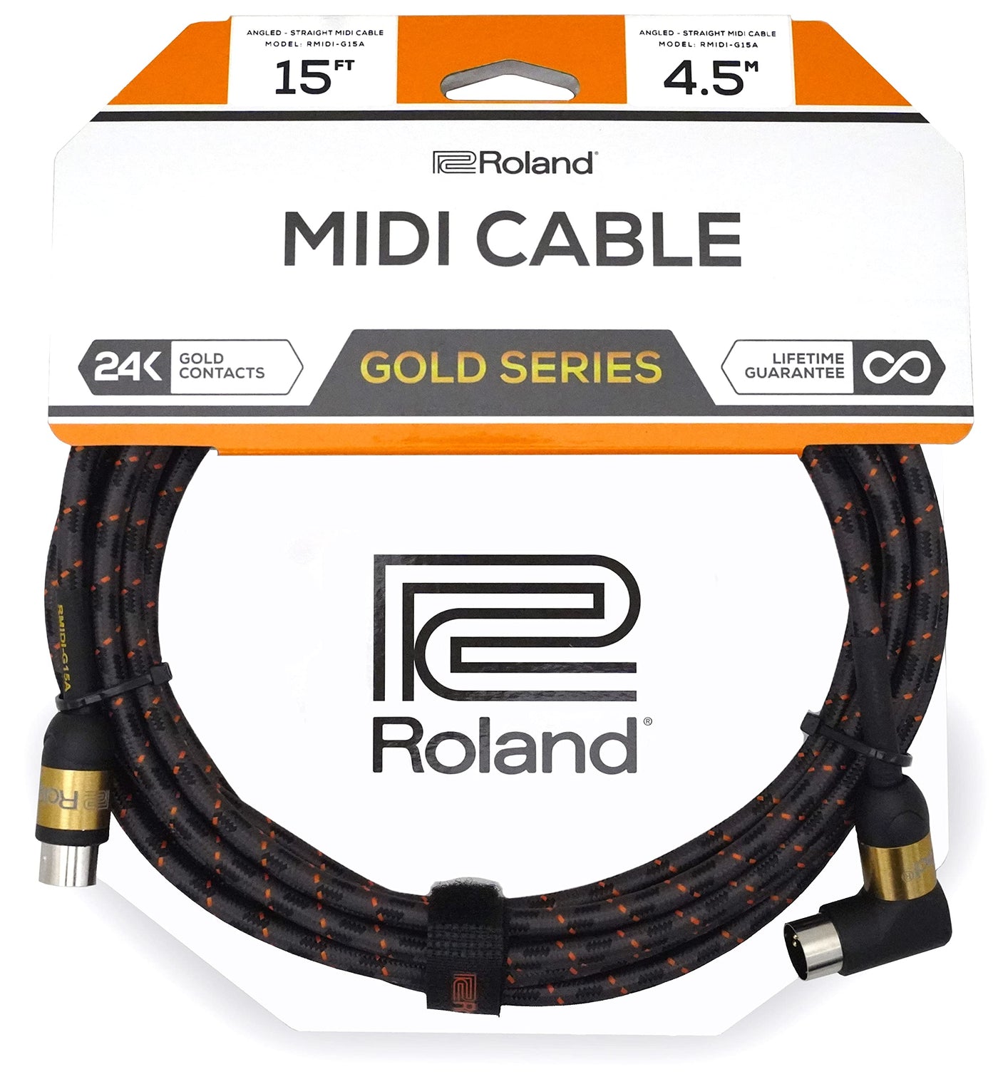 Q: How durable is the Roland MIDI cable?A: The Roland Gold Series MIDI cable is built with heavy-duty connectors that feature gold contacts and a robust woven outer jacket, providing excellent durability for long-term use in various settings.
