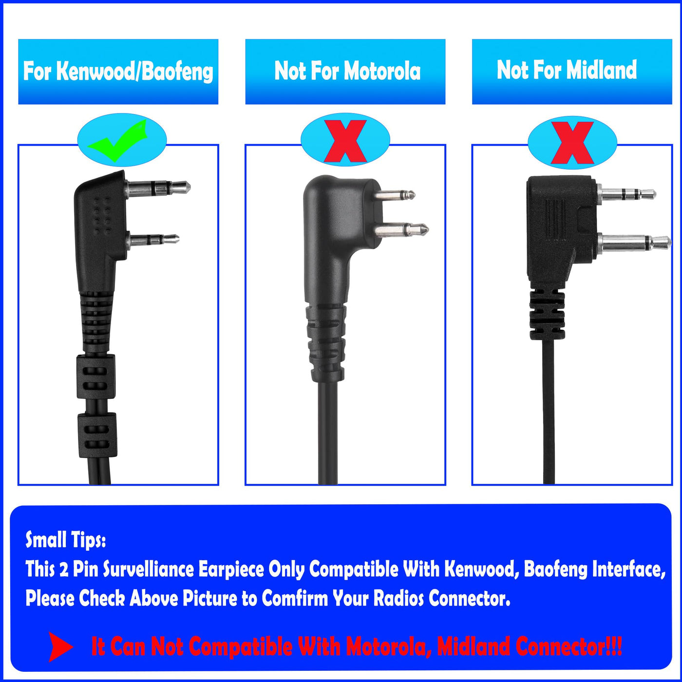 Samcom Surveillance Transparent Acoustic Tube Earpiece With 2 Pin K Type 3.5/2.5Mm Plug, Applicable To Fpcn10A/Fpcn30A And Compatible With Kenwood Baofeng Walkie Talkies | ?Small Tips? This 2 Pin Plug Earpiece Do Not Use For With Motorola And Midland Radio. Please Confirm Your Radios Jacks Before Purchase | ?2-Wire Long Cable Unique Design? For Separate Speaker And Separate Microphone, No Interference With Each Other, Clear Sound Quality. Microphone Cable Length: 49.5 Inches; Earpiece Cable Length: 57 Inches | ?Detachable Clear Tube Ear Plugs ?Comfortable Soft Silicone Clear Earplugs That Won'T Make Your Ears Sore Even After Long Periods Of Wear. And The Transparent Tube Part Can Be Freely Removed To Replace, Environmentally Friendly | ?2 Pcs 360 Degree Back Clip? You Can Fix The Microphone And Speaker At The Difference Part | ?Big Ptt Button For Microphone?Easy To Operation Even If Wearing Gloves