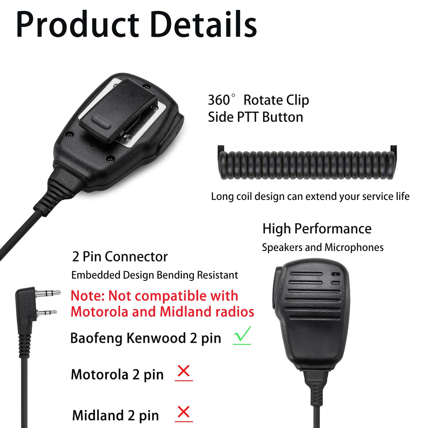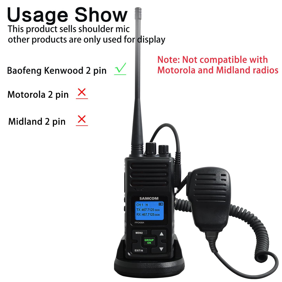 Samcom Shoulder Mic Of Walkie Talkies, Two Way Radio Speaker Mic, Handheld Walkie Talkie Microphone For Most 2 Way Radio, 2 Pin Radio Mic With Ptt (2 Pack)