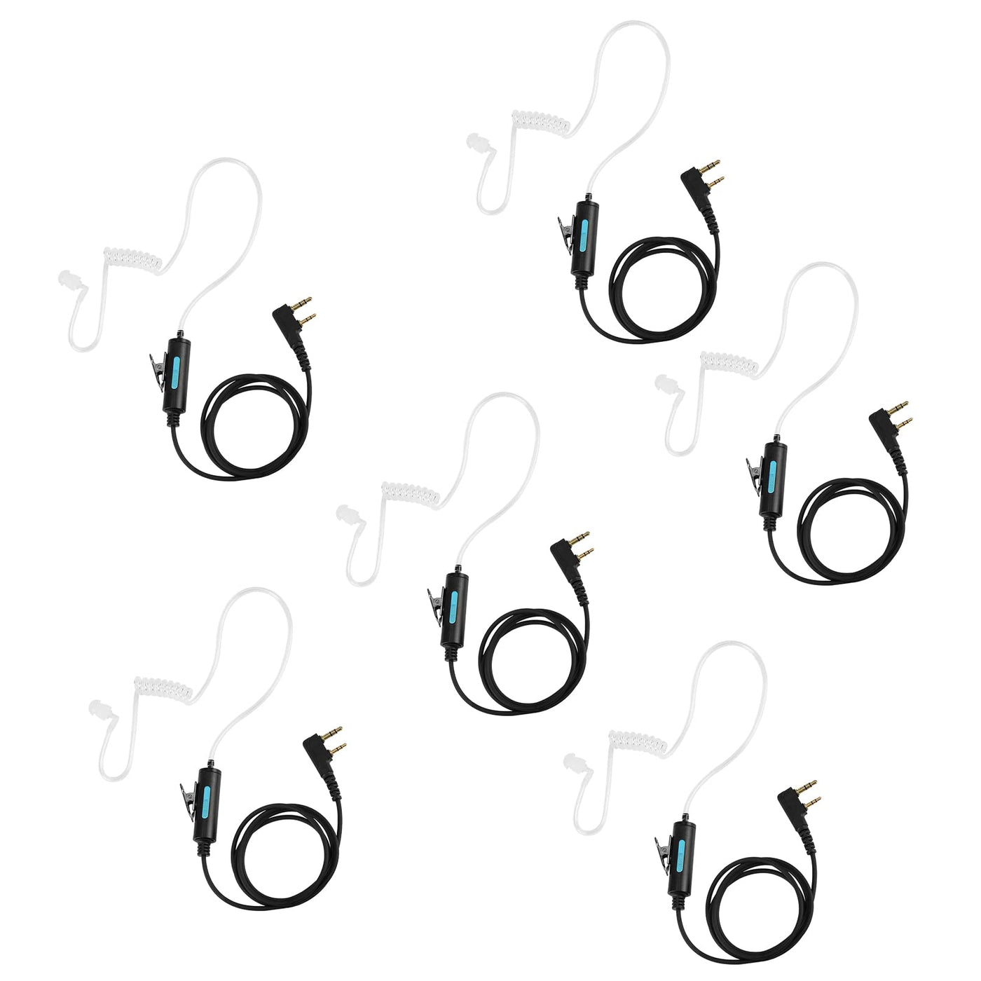 Samcom Walkie Talkies Earpiece With Mic Ptt 2 Pin Transparent Acoustic Tube K Head Headset Surveillance Covert Air Tube Ear Piece Compatible Radios, 6 Packs