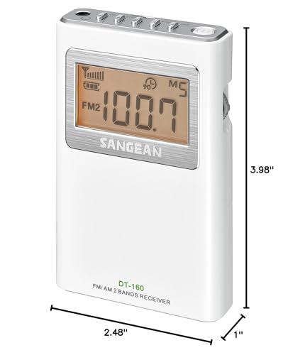 SANGEAN DT-160 AM/FM Stereo Pocket Radio with up to 100 Operating Hours on 2 AA Batteries (White)
