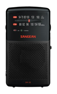 From The Manufacturersr-35 Fm Am Hand-Held Receiver Analog Tuning Am Fm 2 Bands Hand-Held Size Excellent Sound And Reception Built-In Speaker Earphones Jack Large Dial Scale With Smooth Tuningthe Sangean Sr-35 Amfm Analog Radio Is An Attractively-Styled, Pocket-Sized Radio With Simplicity And Function In Mind And It Offers A Combination Of Features For Enjoyable Amamstereo Listening In True Sangean Tradition, Amfm Reception Is Excellent Providing Clear And Static Free Listening, And The Dial Precisely Tunes Your Station Selection Displayed In A Softly Lighted Analog Display It Has Excellent Reception And Audio For Its Size A Convenient Neck Strap Is Included 225 Full-Range Speaker Provides Surprising Clarity And Crisp Tones View Larger Highly Portablethe Sr-35 Is A Small Pll-Synthesized Amfm Stereo Radio Thats Small Enough To Hold In Your Hand, And Powerful Enough To Pull In Those Distant Amfm Stations It Measures A Mere 276 By 484 By 122 Inches, And Weighs Only 59 Ounces, Making It Portable Enough To Take Anywhere Built-In Speakerthis Radio Features A Built-In Speaker For Convenient Headphone-Free Listening The 225-Inch, Full-Range Speaker Provides Surprising Clarity And Crisp Tones, Whether Youre Catching Up On The Latest News Or Listening To Your Favorite Music Stationwith Phase Loop Lock Digital Tuning And Sangeans Traditional Radio Sensitivity, Built-In Speaker And Included Earbuds, You Will Be Able To Enjoy Your Next Day Trip, Your Short Trip To The Beach, Or Other Outing Without Missing Your Favorite Amfm Station If You Have The Sr-35 Pocket Radioproduct Descriptionwith Phase Loop Lock Digital Tuning And Sangeans Traditional Radio Sensitivity You Will Be Able To Enjoy Your Next Day Trip, Your Short Trip To The Beach, Or Other Outing Without Missing Your Favorite Amfm Station If You Have The Sr-35 Pocket Radio
