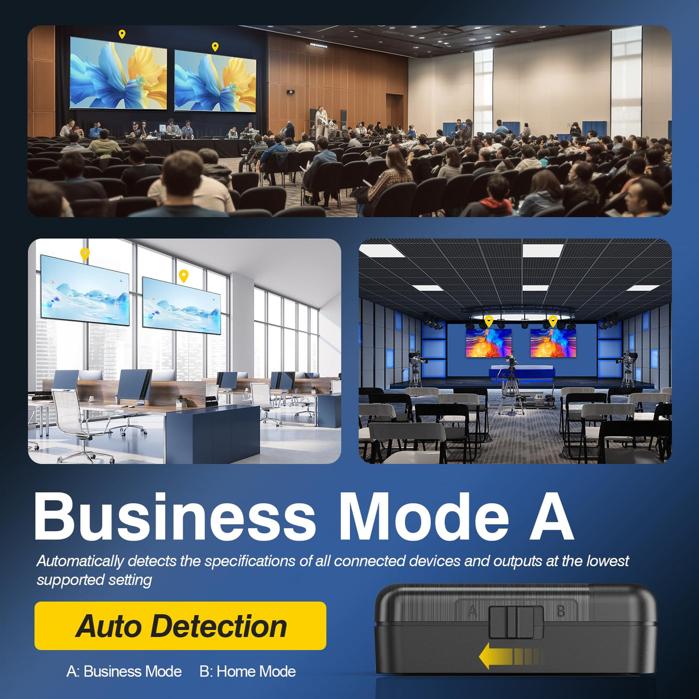 Q: Can I use the HDMI splitter with different resolution displays?A: Yes, the splitter features mixed resolution downscaling, allowing it to automatically adjust and deliver optimal video output to displays with different resolutions.
