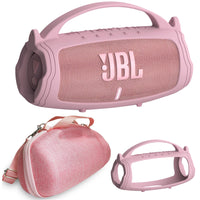Silicone Cover And Hard Travel Case For Jbl Charge 4 / Charge 5 Portable Bluetooth Speaker Accessories (Pink Case, Not For Wi Fi Version)