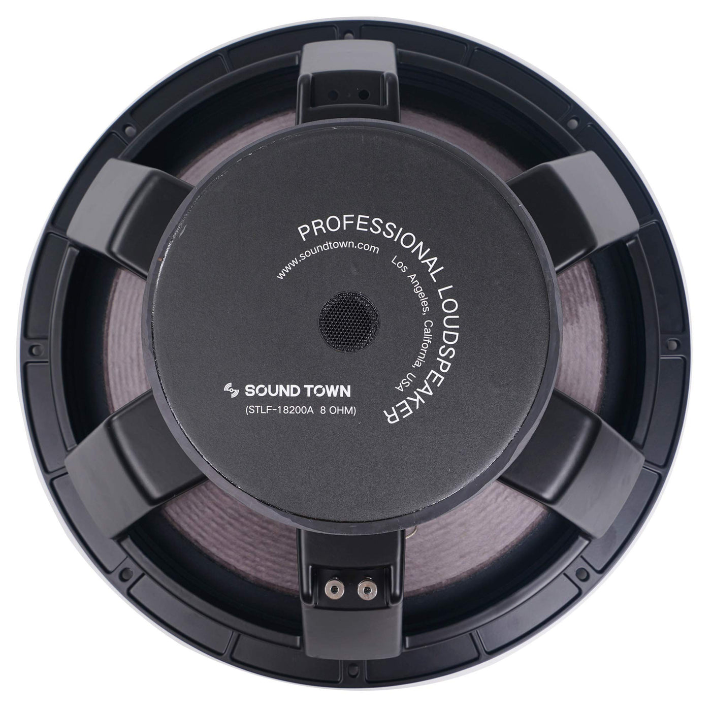 The Sound Town Stlf-18200A Comes A 18� Universal Replacement Driver For Pa/Dj Woofers; It Is Compatible With The Sound Town Pa Speakers & Subwoofers And Speakers Of Other Brands Which Need A 18� Subwoofer As Well. The Subwoofer Comes With 8-Ohm Impedance And Has A Frequency Range Of 35-2K Hz. Sensitivity 102Db. It Is Built In A Cast Aluminum Chassis And Has A Paper Cone With Cloth Edge. With 800W Rms Power Handling Capability, The Stlf-18200A Delivers Massive And Deep Bass And Makes A Great Replacement Woofer For Your 18-Inch Pa Speakers Or Subwoofer Cabinet.