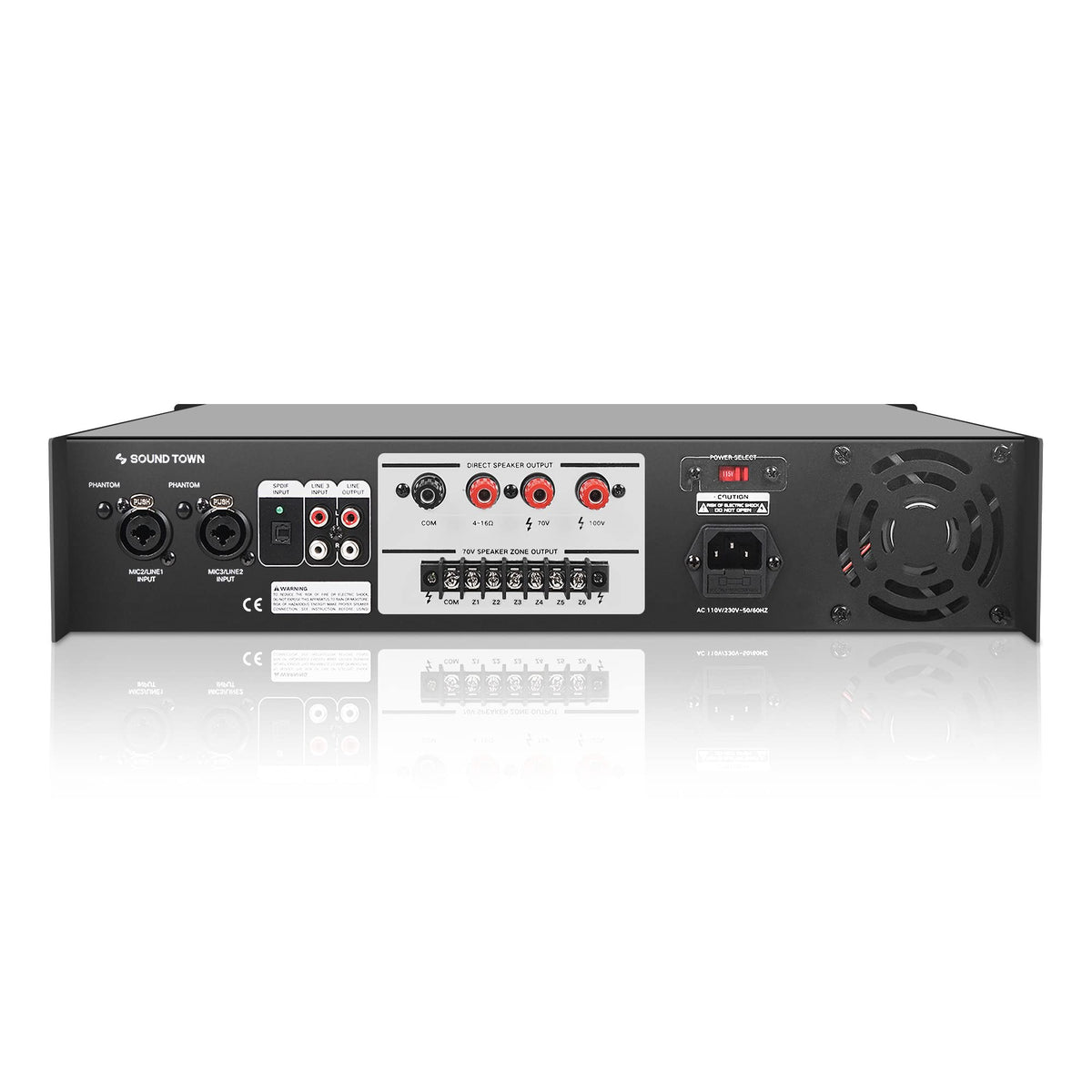 Sound Town 360W 6 Zone 70V/100V Commercial Power Amplifier With Bluetooth, Optical, Phantom Power, For Restaurants, Lounges, Bars, Pubs, Schools (Stca360 6Z)