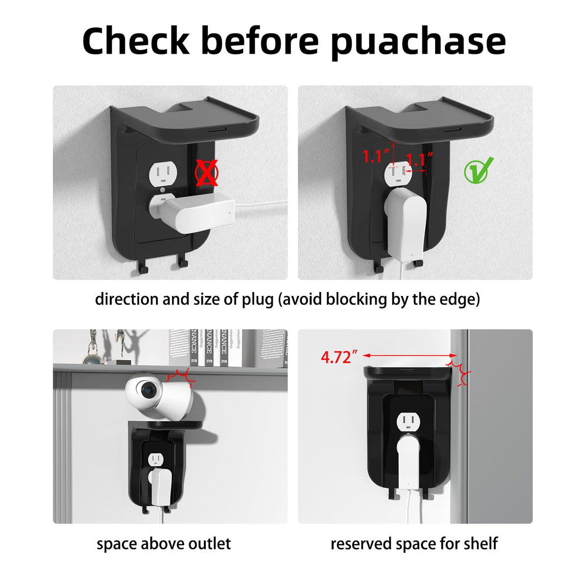 Suptek Wall Outlet Shelf, Home Wall Shelf Organizer For Outlets, Perfect For Bathroom, Kitchen, Bedrooms,Ideal For Cell Phone,Sp