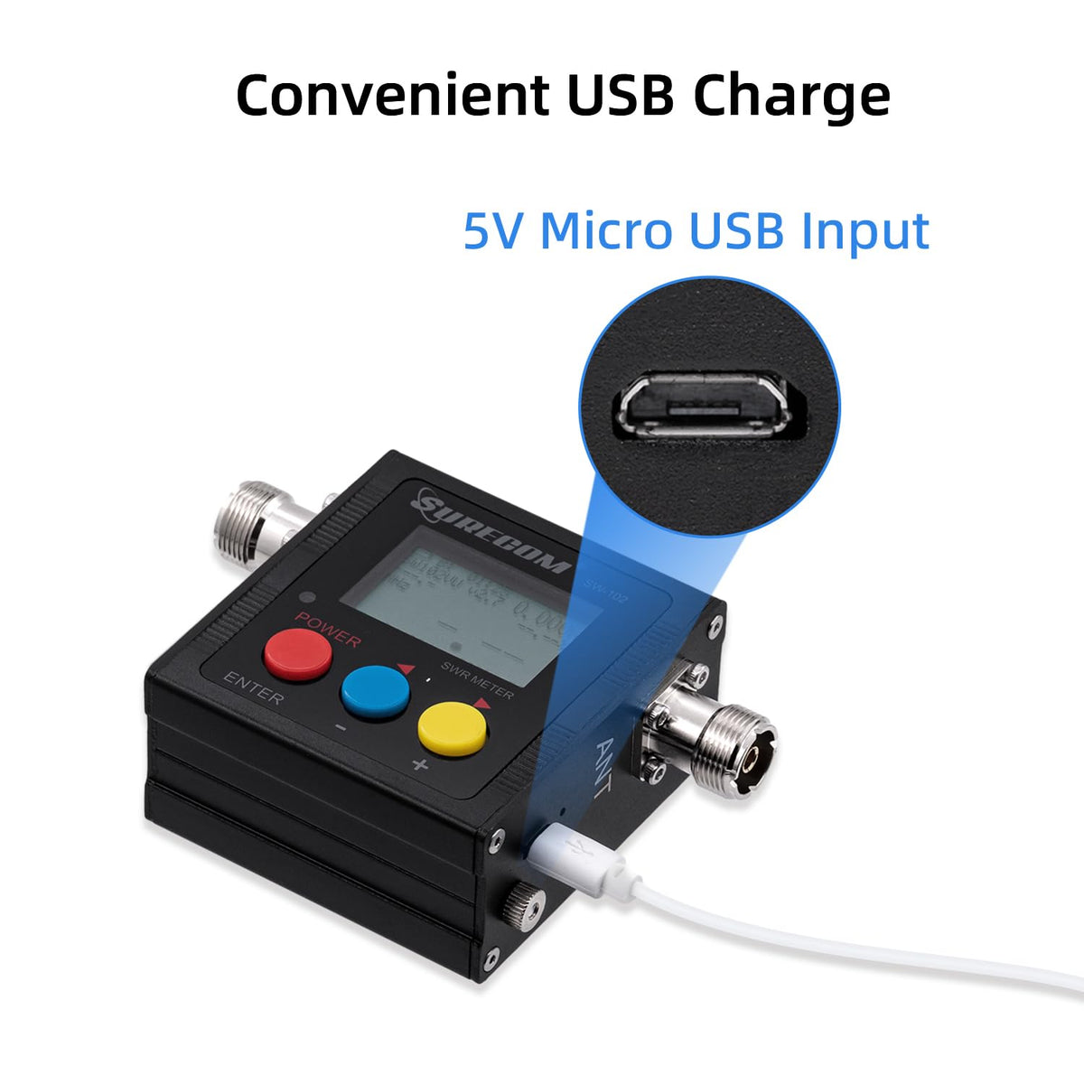 Specifications: Frequency Range: 1025 - 525Mhz Measurable Power Range: 1 - 120W(+-0.5%) Input Frequency Counter (Min 0.5 W Input) Maximum Power: 120W Impedance: 50O Size: W 76 X H 77 X D35 Mm. Weight: < 220 Grams Battery : 3.7V Li-Ion Rechargeable Battery Interface: So239 Interface Max. Power In: 120 W (Measurable Power,Radio Must Be Analog) V.S.W.R: 1.00~19.9 Frequency Ranger: Cover : 100Mhz~520Mhz Insertion Loss: < 0.15Db(Vhf) , < 0.25Db(Uhf) Temperature: 0?~60? Frequency Counter: Yes ( Tx Input Must Be Minimum 0.5W + - 0.5%) Battery Voltage Display: Yes Battery Build-In: 600 Mah Li-Ion Battery Auto Power Off: 1-9 Mins Size: 66*68*37 (Mm) Charger In: 5V (Micro Usb) Backlight: Auto Off 1-9 Mins Interface (In And Out ): So239 Weight: 220G (Include Battery)
