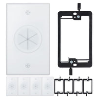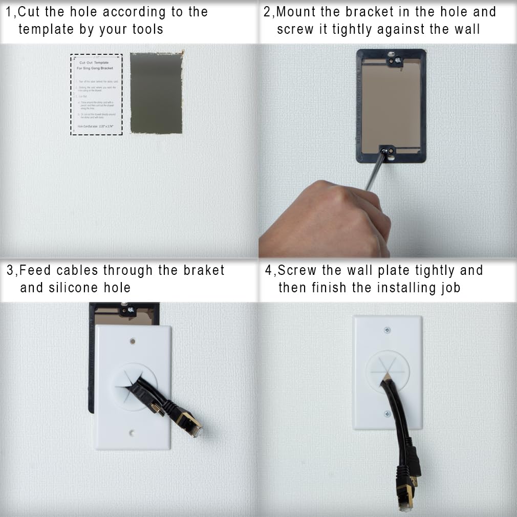 Syunko Cable Wall Plate Passthrough, A Smart Cord Hider For Home Theater System Low-Voltage Cables In-Wall Installation. Product Features: Syunko Cable Pass Through Wall Plate Center Is Mounted With A Round Silicone Cover Which Is Soft And Flexible To Run Your Cables And Wires Smoothly In-Out The Wall, Including Hdmi, Coaxial, Network, Fiber Optical, Usb, Vga, Rca, Etc. The Wall Plate Cable Pass Through Is Made According To The Standard 1 Gang Wall Plate, Which Will Maintain The Consistency With The Existing Tv Wall Plates Located In The House. The Low Voltage Mounting Bracket Is Coming With A Template. You Just Need Place The Template On The Ideal Location. And Then Cut The Wall Along The Sides Of The Template. It Is Easy To Mount The Bracket Against The Drywall Tightly. Package: 5-Pcs Of Passthrough Wallplate, Silicone Style, 1-Gang, White 5-Pcs Of Low Voltage Mounting Bracket, 1-Gang, Black 10-Pcs Of White Head Crossed Screws