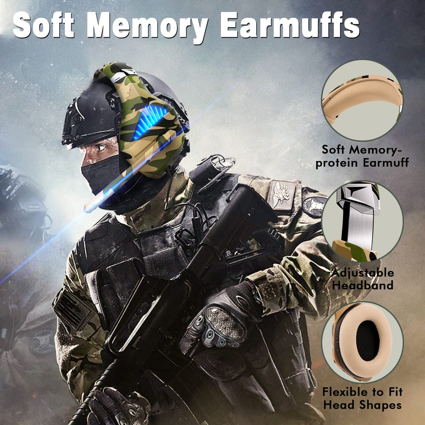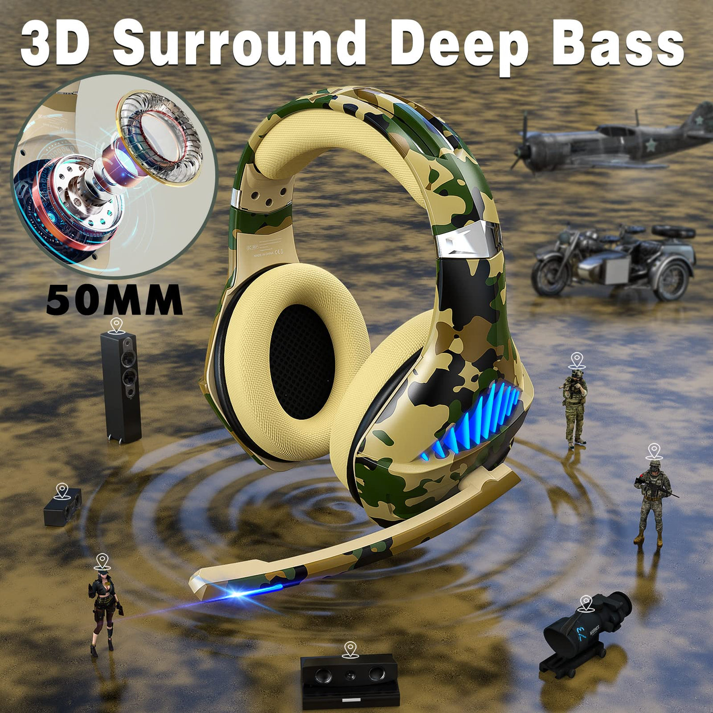 Tatybo Gaming Headset For Ps5 Ps4 Xbox One Switch Pc With Noise Cancelling Over Ear Stereo Bass Surround Sound Gaming Headphone Camo