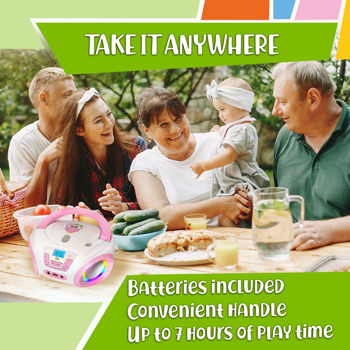 Tinygeeks Tunes Kids Boombox Cd Player For Kids New 2024 + Fm Radio + Batteries Included + Cute Pink Radio Cd Player With Speake