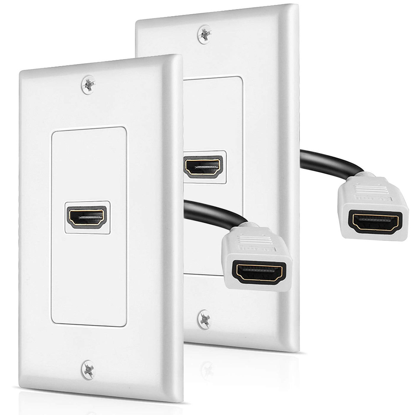 This Hdmi Wall Plates Can Be Used In Home, Commercial And Industrial Buildings To Cleanly Attach Hdmi Cables To A Home Theater Entertainment Equipment Cabinet Box, Junction Box, Surface Mount Box, Or A Mud Ring Mounted In The Drywall Of A Building.This Is Single Port Hdmi Wall Plate With Support For The Hdmi Ethernet Channel Which Delivers Ethernet Data Connectivity Through The 4 Inch Coupler Cable On The Rear Of The Plate.4K Note: Due To The Natural Limitations Of 4K Hdmi Signals And Data Transfer Hardware, Implementing 2 Or More Wall Plates Into Your Setup May Result In A Downscale To 1080P Hd. To Combat This, We Recommend Adding An Hdmi Repeater/Amplifier (B079Mc3Wlx) Before The Signal Reaches The 4K Display If Your Setup Is Either Over 15Ft Or Implements 2 Wall Plates. (Multiple Wall Plates May Result In A Decrease In 4K Distance)Package Content:2X Hdmi Single Port Wall Plate Coupler Outlet Panel Extension