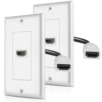 Q: How many HDMI wall plates are included in the package?A: The package includes two HDMI single port wall plate coupler outlet panels, providing a cost-effective solution for connecting HDMI cables behind the wall.