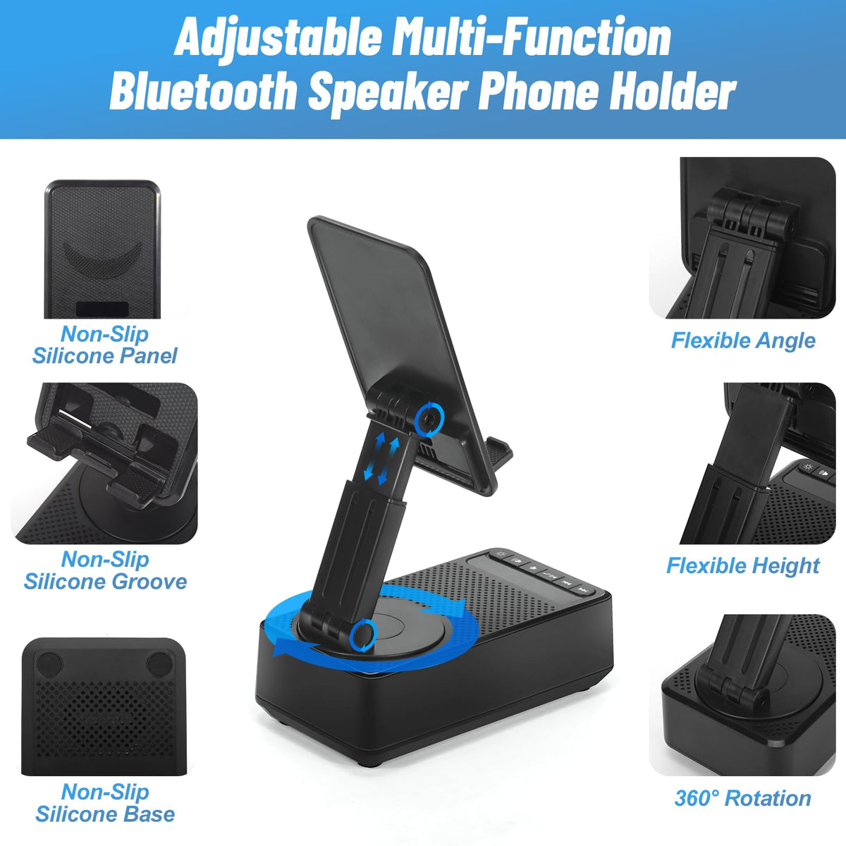 Toiysyy Cell Phone Stand With Bluetooth Speaker, Multi Angle 360 Degree Rotating, Hd Sound, Non Slip Base Gifts For Men/Women/Bo