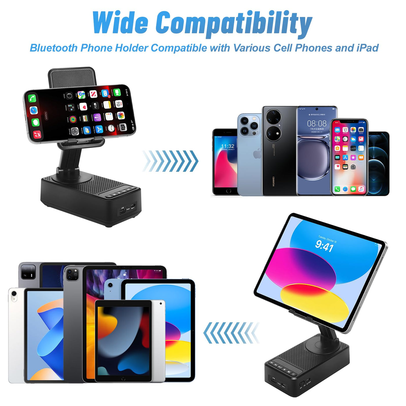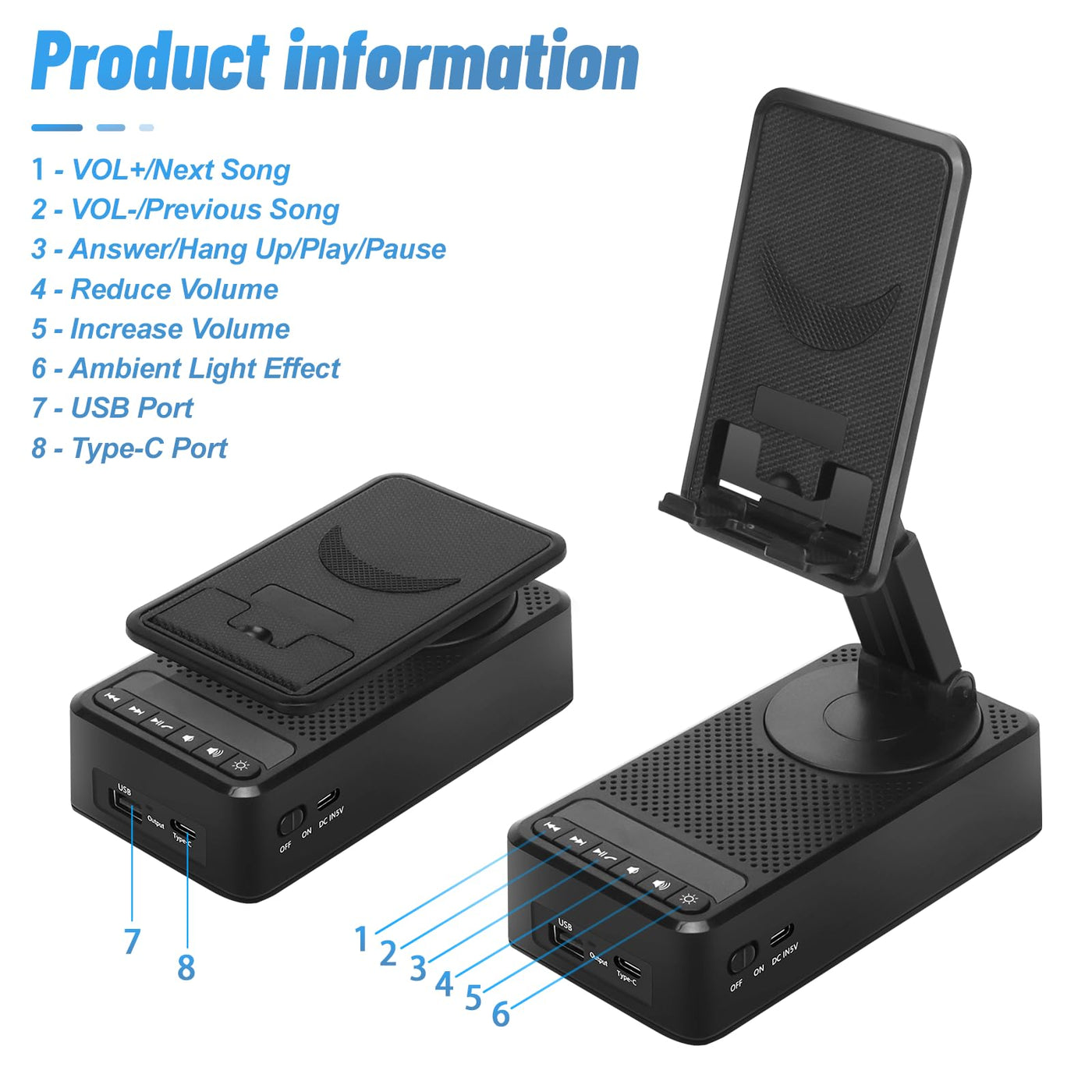 Cell Phone Stand With Wireless Bluetooth Speaker About Toiysyy. Multifunctional Design: * Adjustable Stand Free Your Hands Whether For Leisure Or Study, Exercise Or Cooking. * Adopt Bluetooth 5.1 Technology, Enjoy High-Definition Stereo Surrounding Sound. * Non-Slip Pads At The Stand And The Base Keep Your Device From Sliding Easily. * Foldable Slim Design, Mini Size For Easy Portability. * Perfect Gift Choice, Can Be A Unique Birthday Gift For Him/Her/Men/Women/Boys/Girls.