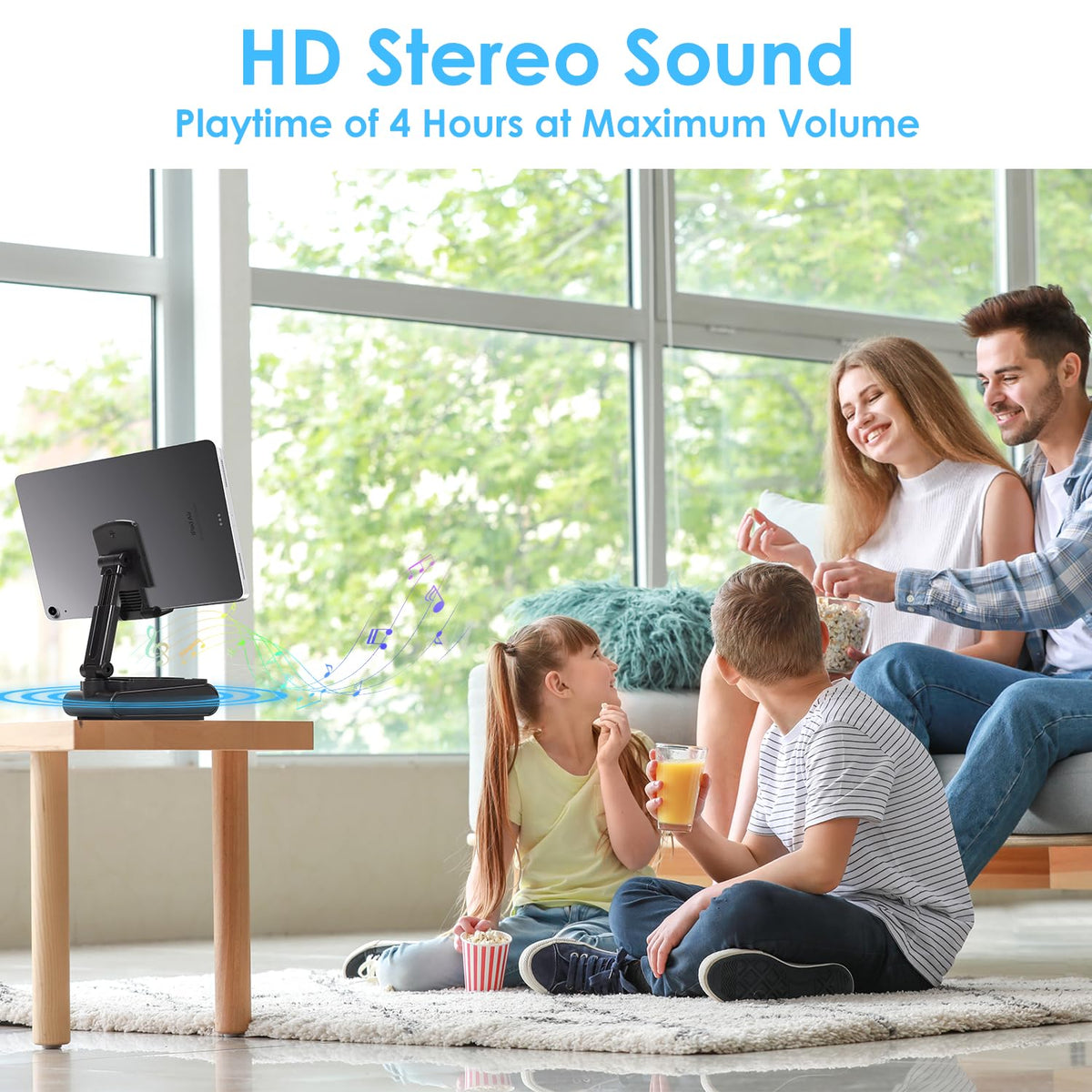 Cell Phone Stand With Wireless Bluetooth Speaker About Toiysyy. Multifunctional Design: * Adjustable Stand Free Your Hands Whether For Leisure Or Study, Exercise Or Cooking. * Adopt Bluetooth 5.1 Technology, Enjoy High-Definition Stereo Surrounding Sound. * Non-Slip Pads At The Stand And The Base Keep Your Device From Sliding Easily. * Foldable Slim Design, Mini Size For Easy Portability. * Perfect Gift Choice, Can Be A Unique Birthday Gift For Him/Her/Men/Women/Boys/Girls. Multi-Function Button (From The Left To Right) 1. The Previous 2. The Next 3. Power On/Off, Play/Pause, Answer/Hang Up 4. Reduce Volume 5. Increase Volume Services: Toiysyy Provides 100% Satisfaction Product To Our Customers And 24-Hour Email Contact Service. If There Is Any Issue With The Product, Please Feel Free To Contact Us.