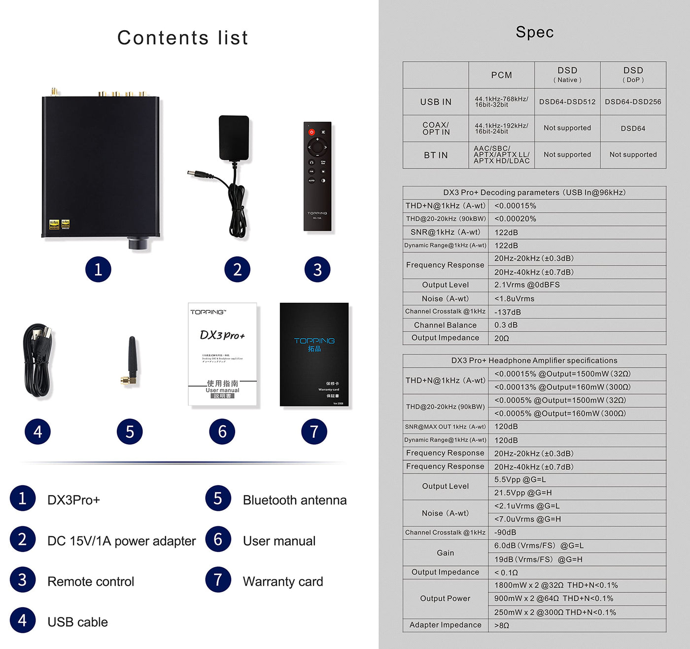 Topping Dx3Pro+ Ldac Headphone Amplifier Es9038Q2M Xu208 Nfca Bluetooth5.0 Audio Decoder Usb/Opt/Coax Dac Amp Pre Amplifier With Remote Control (Sliver)
