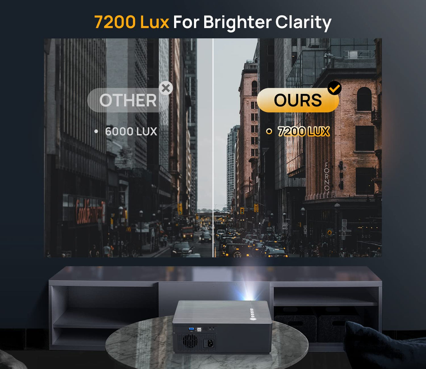 Native 1080P - Capable Of Day And Night Whether You'Re In The Office During The Day Or At Night.The P6 1080P Projector Can Give You Stunning Images And Brightness. It Is Equipped With 6000 Lumens Of Brightness And Native 1080P.Definitely The Best Choice For Your Daily Meetings And Home Theater.Automatic Power-Off Protection System In Order To Protect You And Your Family, We Have Designed A Power Automatic Power-Off Protection System. When The Projector'S Light Source Reaches 158 ? (The Surface Temperature Is About 130~140 ?), The Projector Will Automatically Power Off And Dissipate Heat. The Fan Will Continue To Work, And The Internal Heat Of The Projector Will Be Released To Protect The Projector.More Personalized Placement And More Rational Use Of Space Maybe Your Room Is Not Able To Project 50 Inches, Or You Want To Project 120 Inches Or Even 200 Inches In A Limited Space. Now The Uuo P6 Projector Can Make Everything Possible. It Is Equipped With 50 Electronic Keystone Correction And Rotation Function. You No Longer Need To Place The Projector In The Center, It Can Be Placed In The Corner Of The Room, And It Is Also Close To The Wall Power Socket. So That You Can Enjoy Your American Blockbuster.300'' Large Screen - More Sharing-Experience More Broad The Best Projection Distance Is 120 ''. Whether You Are A Small Conference Room, A Large Staircase Classroom Or A Large Conference Hall, And Even Project 300 Inches On A Large Concert Screen As A Scene, It Can Be Completely Competent.