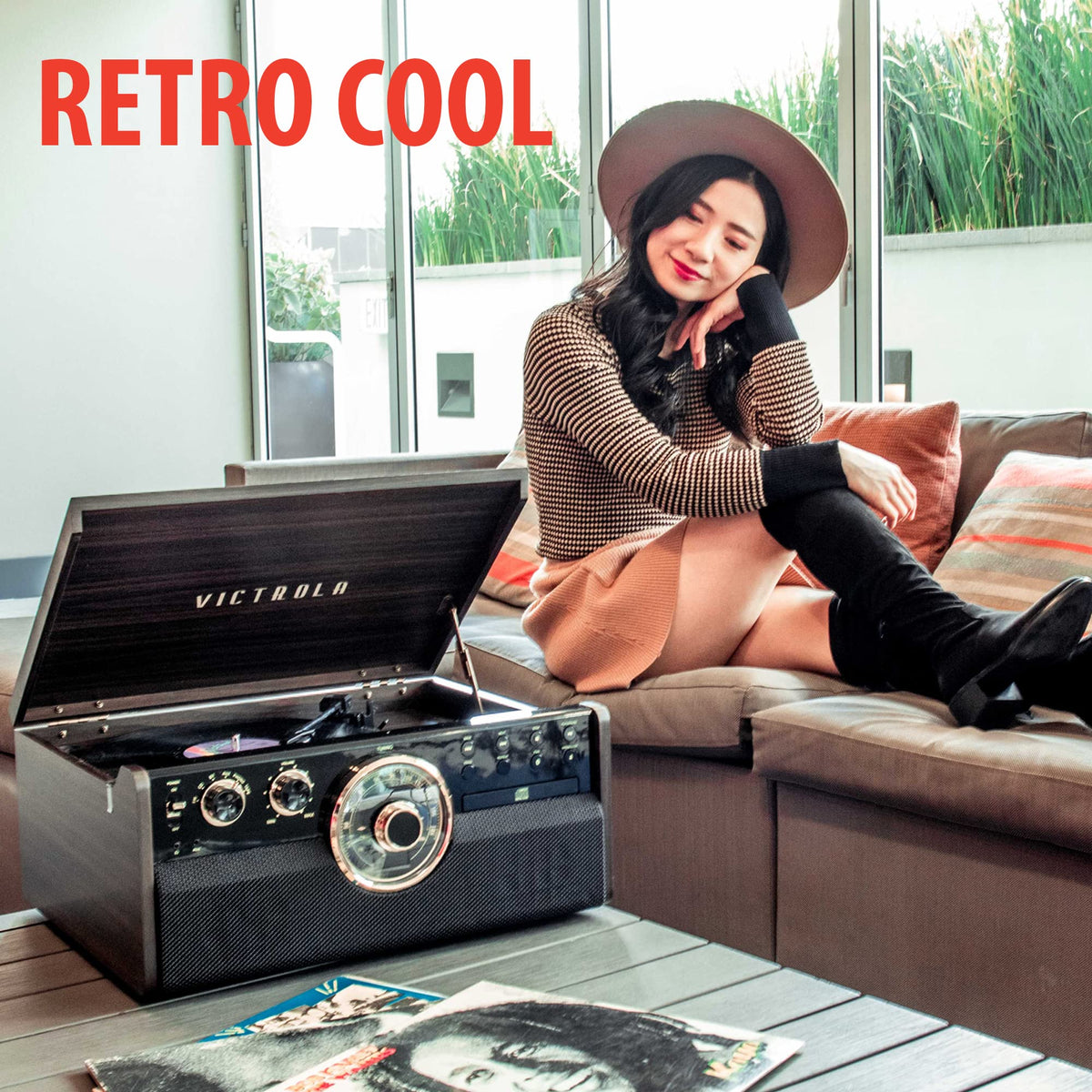 Victrola Mid Century 6 In 1 Bluetooth Record Player & Multimedia Center With Built In Speakers 3 Speed Turntable, Cd & Cassett