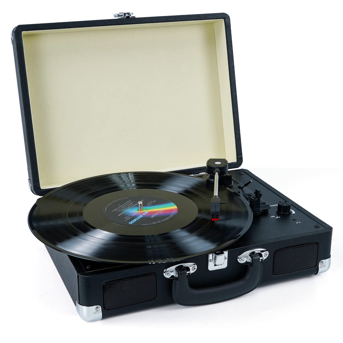 Vinyl Record Player, 3 Speeds Belt Driven Suitcase Portable Turntable For Vinyl Records With Built In Speakers/Rca Output/Aux In/Headphone Jack/ 45 Adapter Black