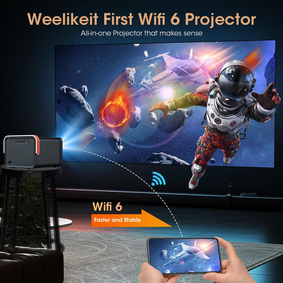 Weelikeit Projector, Mini Portable Projector 1080P Hd 4K Support, Home Theater Movie Projector With 5G Wifi 6 And Bluetooth, Out