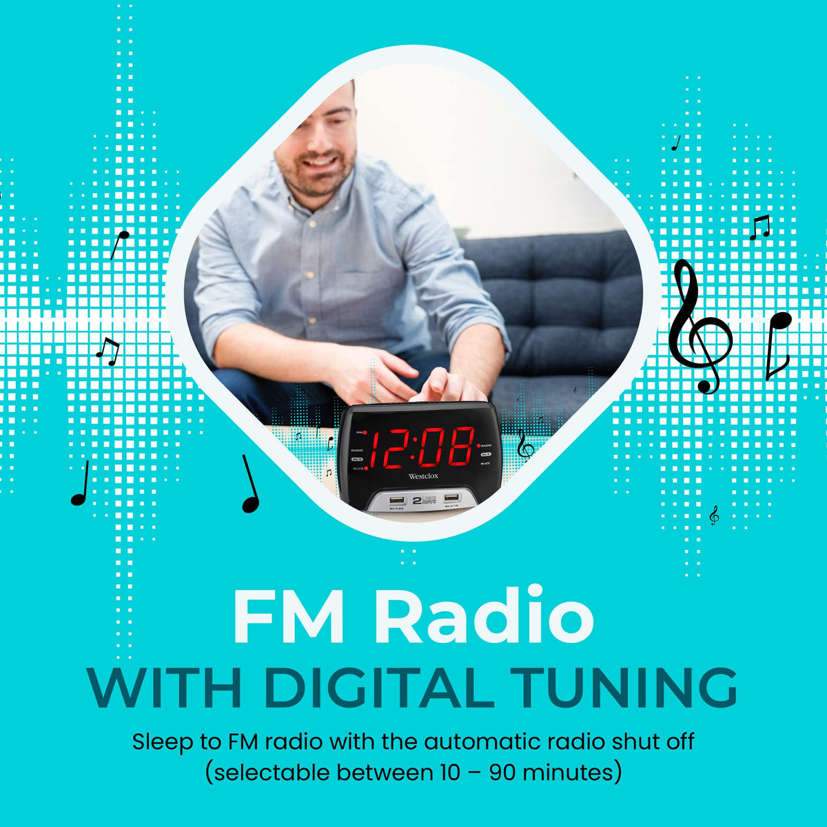 Westclox Large 1.4� Red Led Digital Fm Clock Radio With Dual Usb A & C Charging Ports, Adjustable Brightness, Dual Alarms & Sleep Timer � Modern Alarm Clock For Bedroom, Home, Or Office (Black)