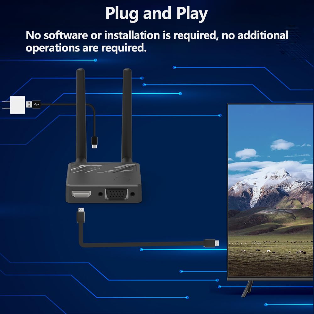 Experience Seamless Wireless Streaming With The 1080P Wireless Hdmi Display Receiver. This Versatile Device Allows You To Effortlessly Transmit Video, Audio, And Files From Your Laptop, Pc, Or Smartphone To Your Hdtv, Projector, Or Monitor. With Plug-And-Play Functionality, Setting Up This Wireless Extender Is A Breeze. Enjoy Crystal-Clear 1080P Resolution And Immersive Surround Sound Without The Hassle Of Tangled Cables. Whether You'Re Streaming Movies, Giving Presentations, Or Sharing Photos, This Receiver Ensures A Smooth And Uninterrupted Experience. Designed For Convenience, It Offers A Wireless Range Of Up To 30 Feet (9.1 Meters) And Supports A Wide Range Of Devices. Upgrade Your Entertainment Setup And Experience The Freedom Of Wireless Connectivity With This 1080P Wireless Hdmi Display Receiver.