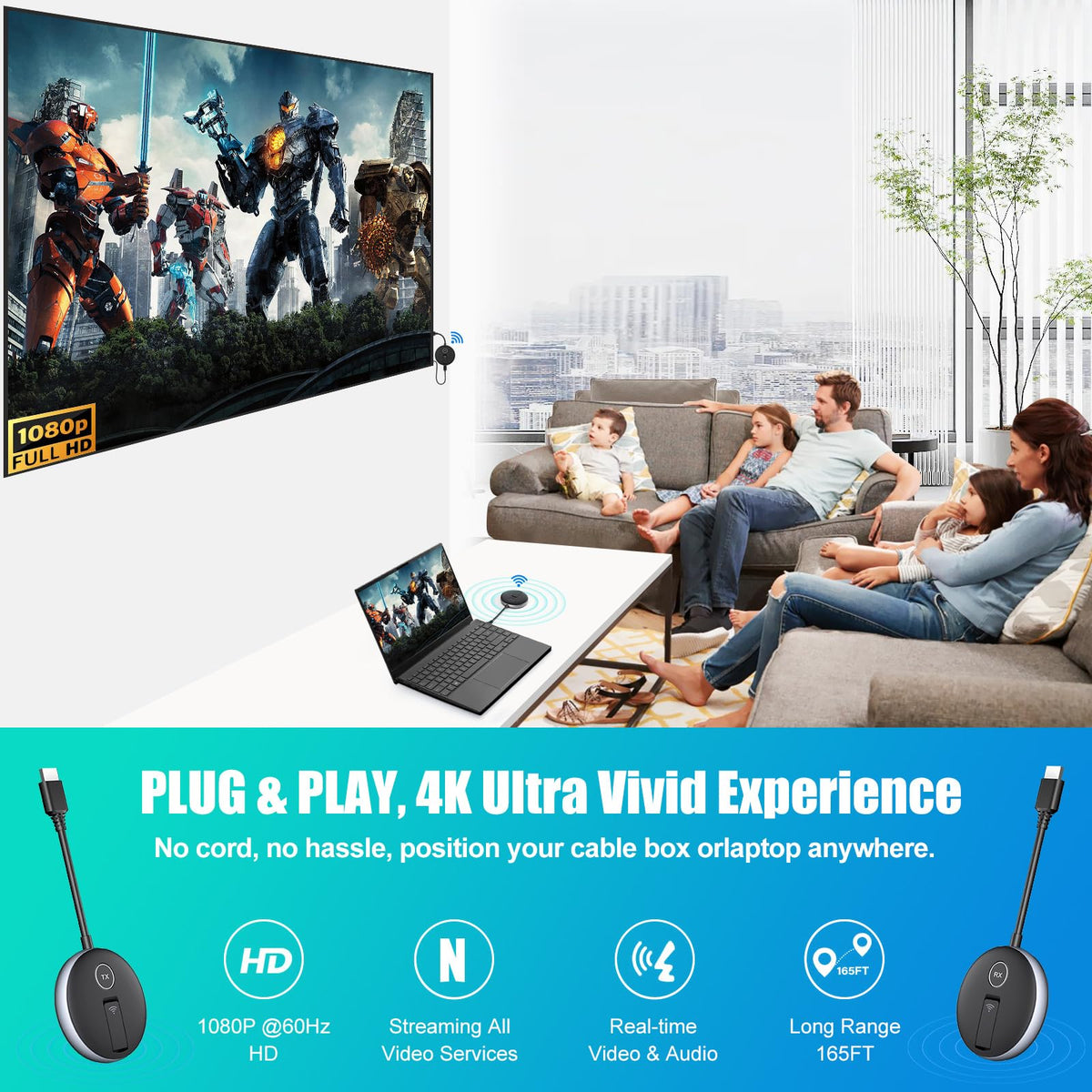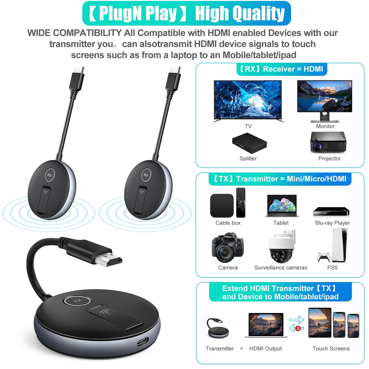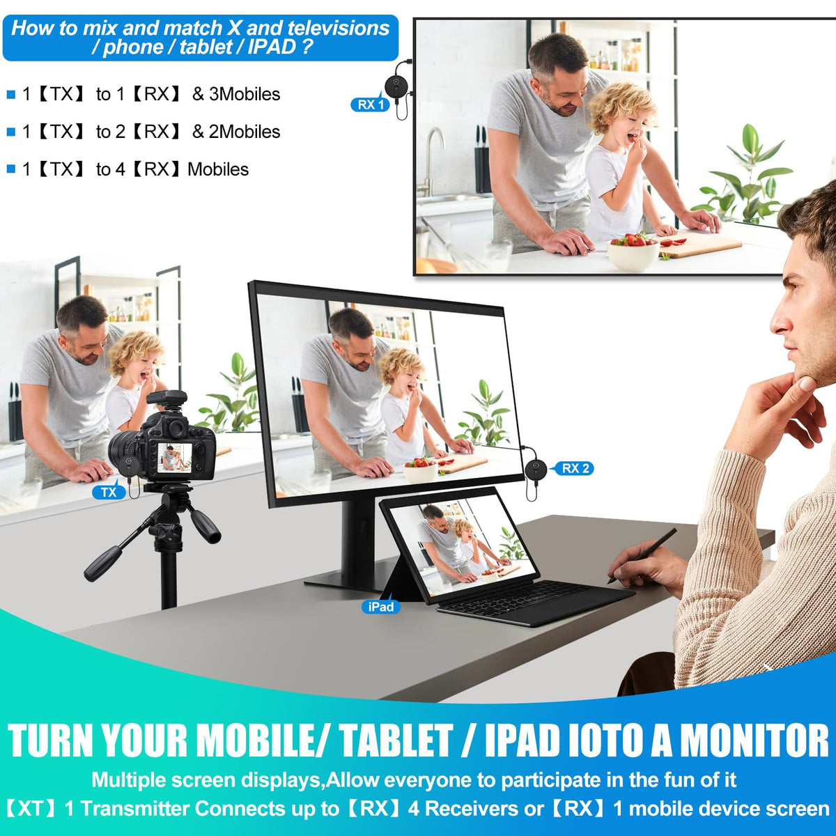 Support Multiple Large-Screen Tvs. Easily Stream Smooth Video And Audio To Multiple Displays (Up To 4 Rxs) Simultaneously With A Transmission Range Of Up To 165Ft/50M In An Open Environment.Experience Versatile Compatibility Across An Array Of Devices Such As Laptops, Pcs, Cameras, Gaming Consoles, Tv Boxes, Set-Top Boxes, Cable Boxes, Blu-Ray/Dvd Players, And Satellite Boxes. Enjoy Seamless Connectivity With Display Devices Including Hdtvs, Projectors, Tvs, Monitors, Advertising Machines, Conference Screens, And Televisions. Yaomaisi Wireless Hdmi Splitter Introduces The Rscreen App, Which Supports Wireless Mirroring To Mobile Devices-Turn Your Smartphones, Tablets, Ipads, Iphones, And Android Phones Into Convenient Second Screens.