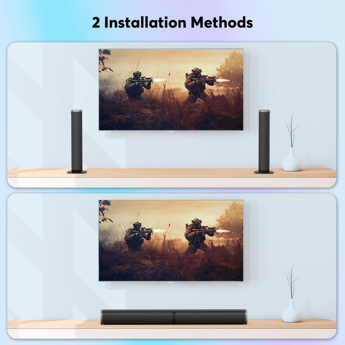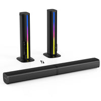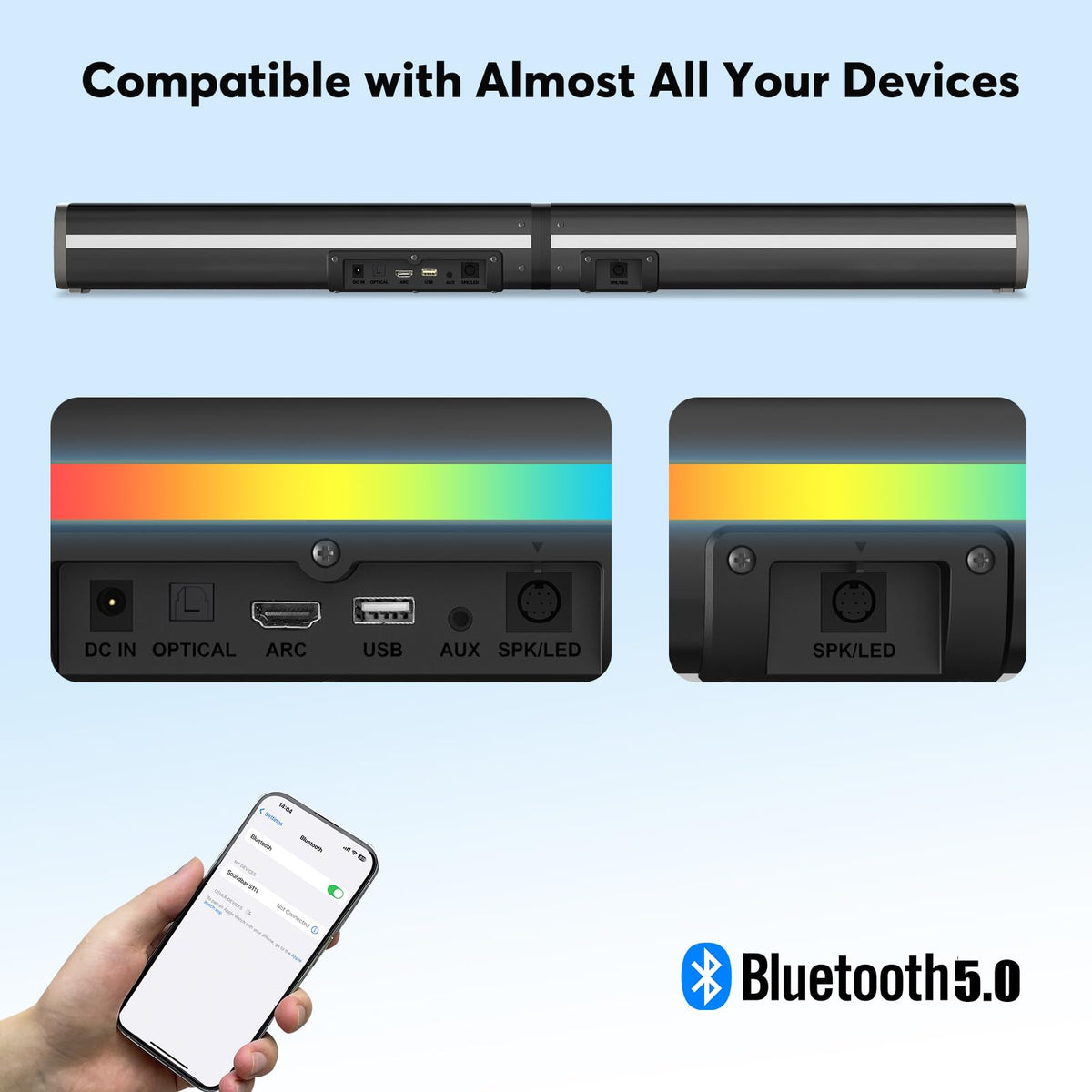 Wohome 2.2 Sound Bar For Tv With Built-In Subwoofers, 32 Inches Detachable Soundbar Speaker, Bluetooth 5.3/Optical/Aux/Usb Connection With Colorful Backlight (Black)