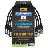 3 Units - 1 Foot - Canare L-4E6S, Star Quad, Shielded (Braided Shield & Polyethylene Insulation) Balanced Microphone Cables Terminated With Amphenol Ax3M Silver Xlr Male Connectors And Amphenol Ax3F Silver Xlr Female Connectors (This Sale Is For 3 Cables, Each Cable Is 1 Foot Long) - Custom Made By Worlds Best Cables