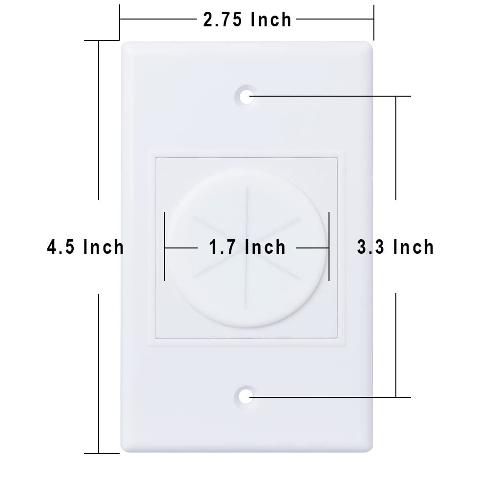 Yoemely Round Silicone Cable Pass Through Wall Plate Is A Nice Kit To Concealing Media Cables Of The Houses, Offices And Malls Locations. [Features:] 1 Gang Wall Plate With Silicone Pass Through The Removeable Round Wall Plate Cable Pass Through Is An Innovative Constructure For Locating Cables Smoothly In The Wall Behind Your Media Applications. And The Wall Plate Covers Allow To Feed All Cable Connectors, Including Power Cords, Dvi, Display Port, Vga, Hdmi, Rca, S-Video, Ethernet Cable, Speaker Wire And So On. Let You Enjoy A Clean Cable Solution Instead Of Mess Cables. Flush Mount, 1-Piece Style The 1-Gang Wall Plate Can Be Flush Mounted To Drywall. And The Standard Single Wall Plate Kit Fits The Existing Low Voltage Brackets Or Gang Outlet Boxes. What You Will Get? 12-Pcs 1 Gang Wall Plates White, Silicone Pass Through White, 24-Pcs White Painted Screws Our Customer Service Team Is Available 7 Days A Week In Case Any Urgent Request Or Assistance Needed. Just Please Contact Us Freely.
