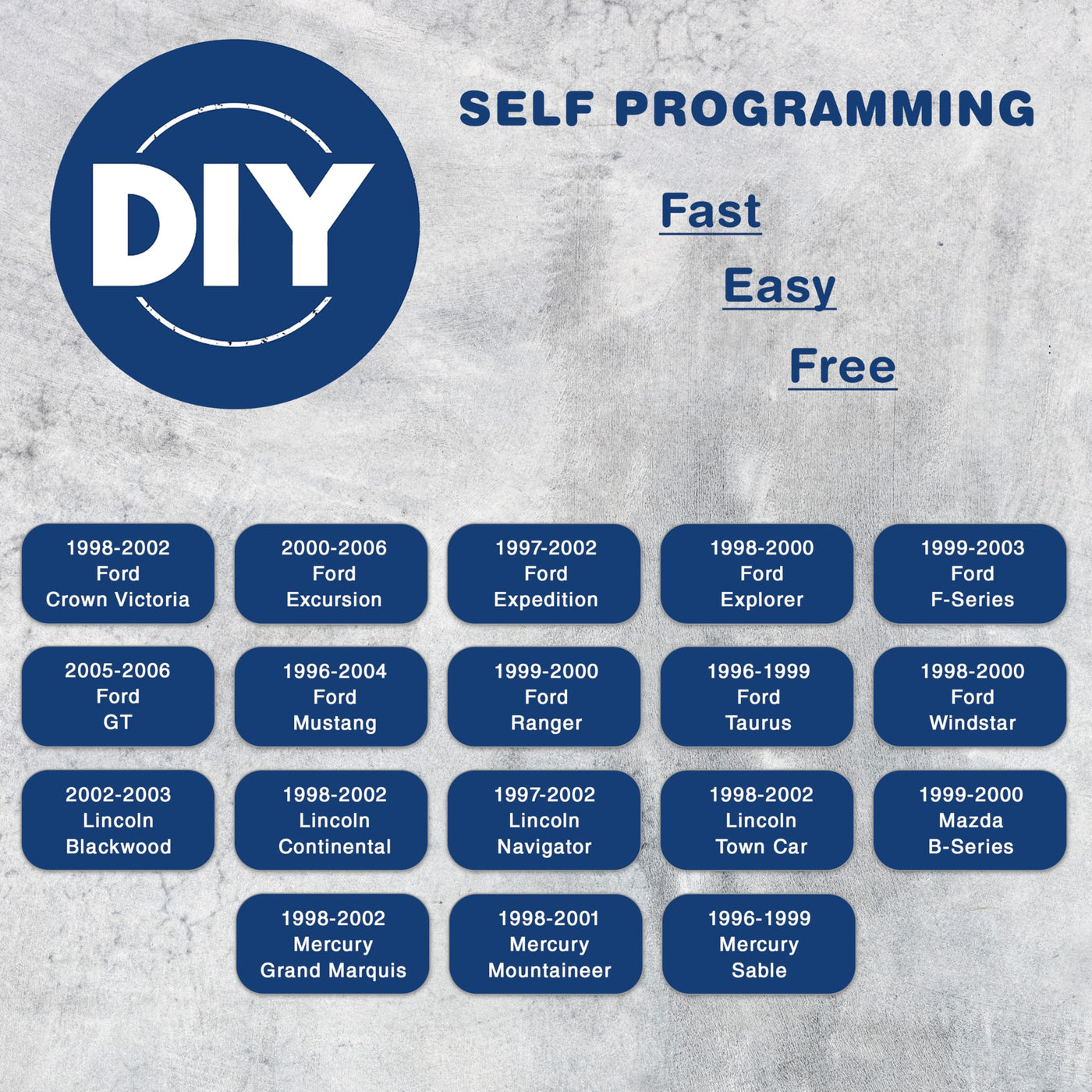 Pair Of Replacement Uncut Transponder Chip Key. This Part Is Compatible With The Following Vehicles And Part Numbers: 1998-2005 Ford Excursion 1998-2002 Ford Crown Victoria 1998-2000 Ford Explorer 1999-2004 Ford F150 F250 F350 F450 F550 Pickup (And Super Duty) 1996-2005 Ford Mustang 1999-2000 Ford Ranger 1996-1999 Ford Taurus 1999-2000 Ford Windstar 2002 Lincoln Blackwood 1998-2002 Lincoln Continental 1998-2002 Lincoln Navigator 1998-2002 Lincoln Town Car 1998-2002 Mercury Grand Marquis 1997-2000 Mercury Mountaineer 1996-1999 Mercury Sable 1998-2002 Mercury Grand Marquis 1998-2002 Mercury Mountaineer 4C Transponder Chip Easy Diy Programming Instructions Are Included With Your Purchase. In Order To Use These Instructions You Must Have 2 Currently Working Original Keys(Not Copies). If You Do Not Have Two Working Keys Dealer Or Locksmith Programming Is Required!