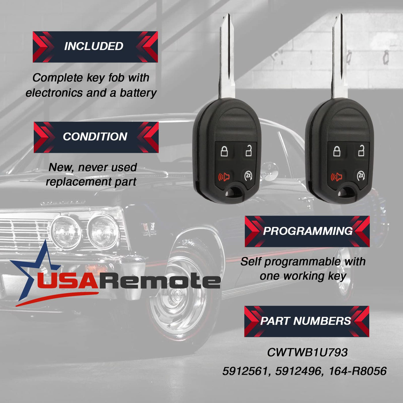 Car Key Fob Keyless Entry Remote Start Fits Ford, Lincoln, Mercury, Mazda (Cwtwb1U793 4 Btn) Guaranteed To Program