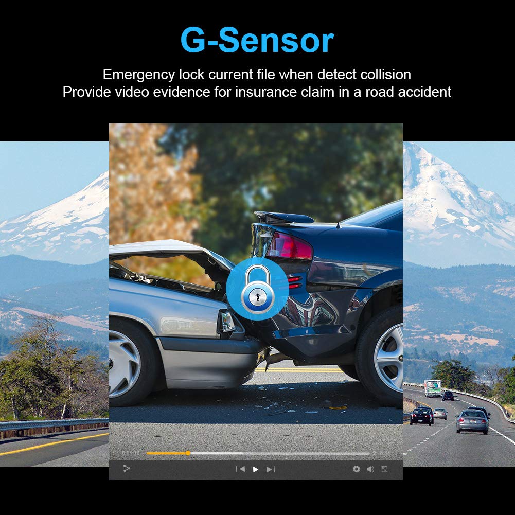 Q: How does the G-sensor feature work in this dash cam?A: The built-in G-sensor detects sudden impacts or collisions, automatically saving and locking the accident footage to provide evidence in case of an accident claim.