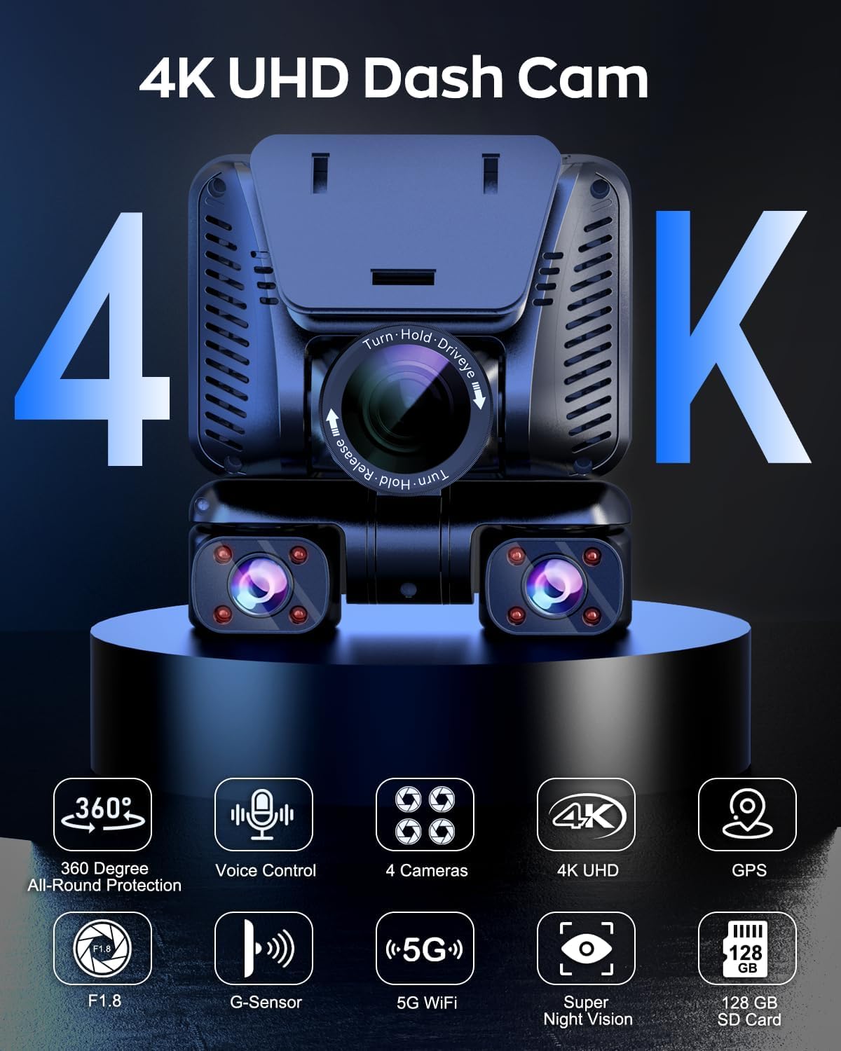 Transform Your Driving Experience With This Advanced 5-Channel Dash Camera System Featuring Comprehensive Surveillance And Baby Monitoring Capabilities. The 4K Front Camera Delivers Crystal-Clear Footage With A 360-Degree View Of Your Surroundings. Stay Connected With Built-In 5Ghz Wi-Fi And Gps Functionality, While Voice Control Allows For Hands-Free Operation. The System Includes A Generous 128Gb Memory Card For Extensive Recording Capacity. Enhanced Night Vision Capabilities Ensure Reliable Performance In Low-Light Conditions, While The Included Cpl Filter Helps Reduce Glare And Reflections. The 24-Hour Parking Mode Provides Continuous Protection For Your Vehicle When Parked, And The G-Sensor Automatically Detects And Saves Footage Of Sudden Movements Or Impacts. Perfect For Families And Safety-Conscious Drivers Who Want Complete Coverage And Peace Of Mind On The Road. The User-Friendly Interface Makes It Easy To Access And Review Footage When Needed.