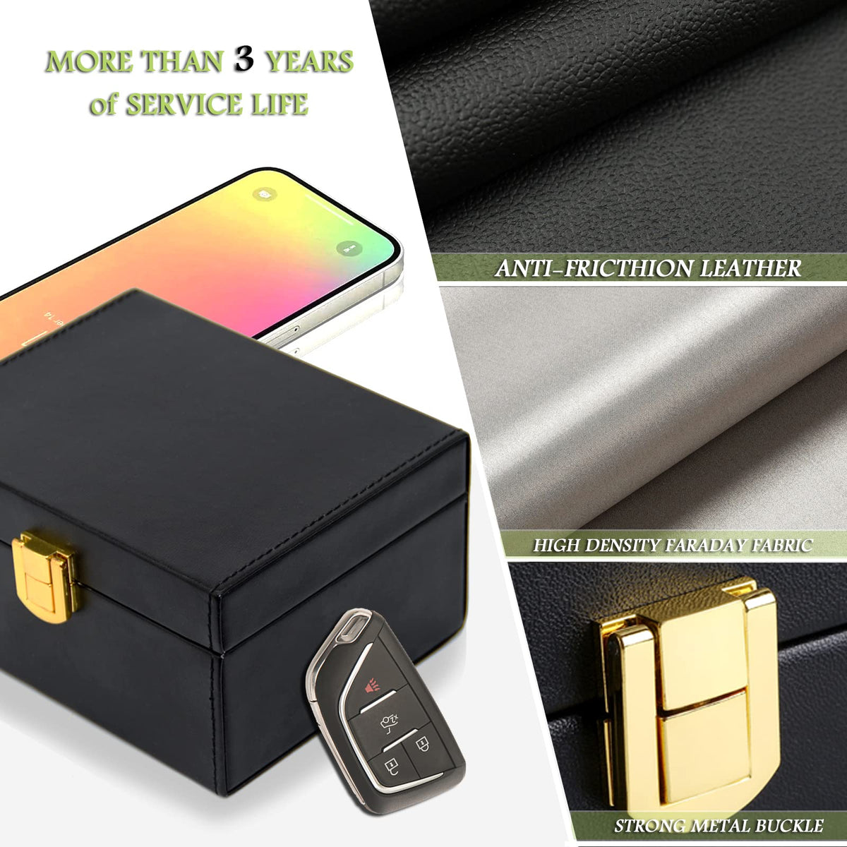 1 x FARADAY BOX: The signal-blocking key box measures 14 x 11 x 7.5 cm and can securely hold 5-8 keys, including key rings and house keys. Its compact size and high cost performance make it an essential accessory.