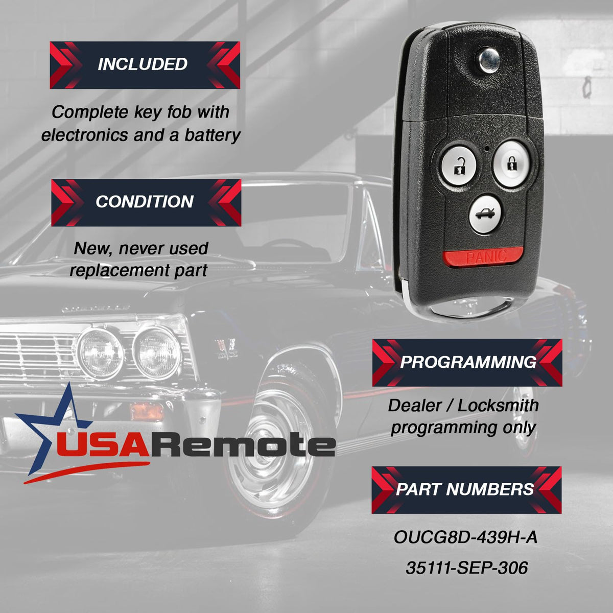 Replace Your Lost Or Broken Keyless Entry Key Fob Remote With A Usaremote Fob. Fits P/N: Oucg8D-439H-A2007-2008 Acura Tlthis Is A Replacement Aftermarket Part.