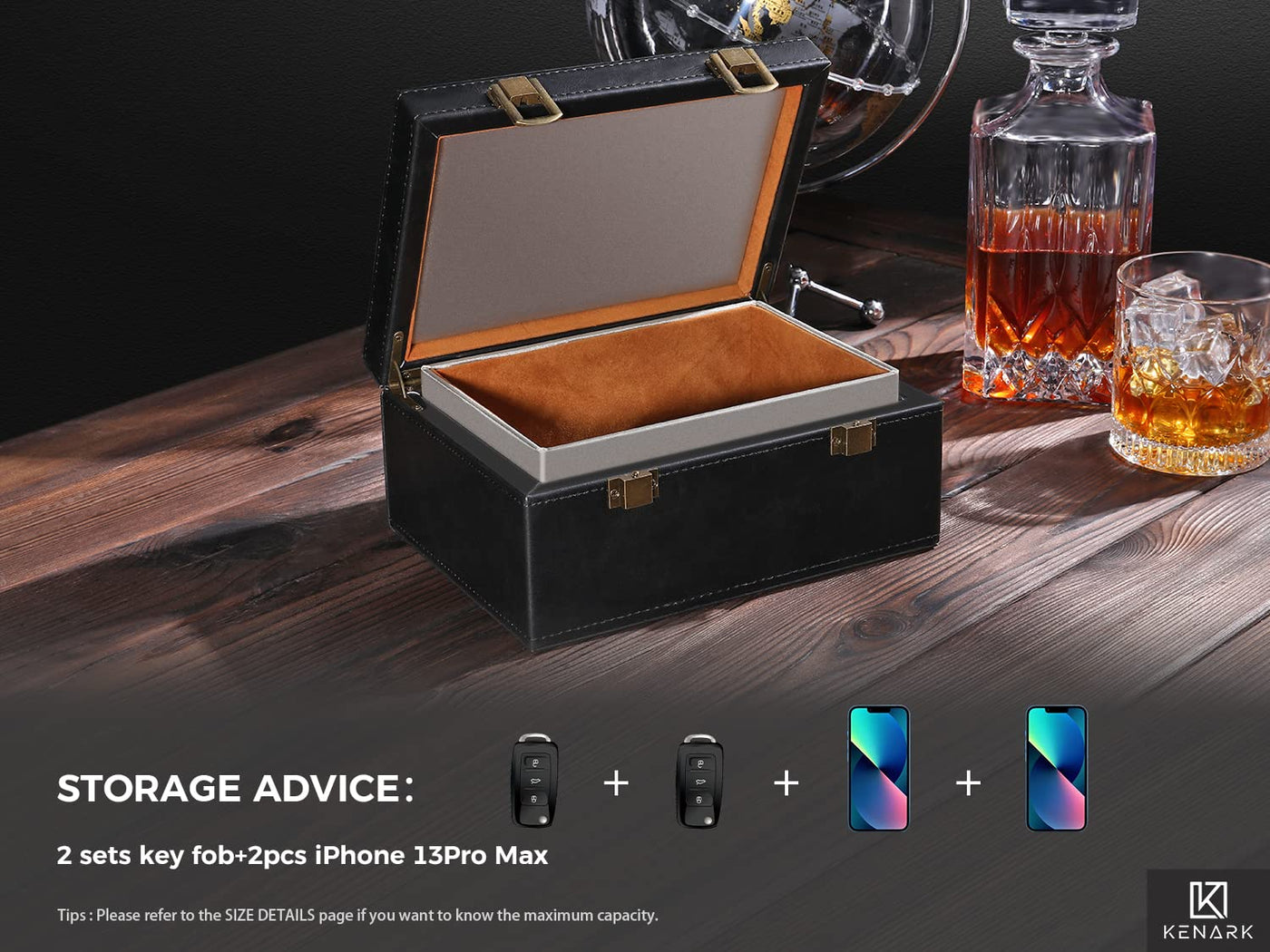 Kenark Elegant Faraday Box, Protecting Key Fob, Blocking Car Key Signal Amplifing Anti-Theft For Your Vehicle, Anti-Cloning Of Data From Phonecar Keycredit Card Etc, Anti-Tracking By Gps, Emp Protection, Rfid Protection With A Car Is Stolen Every 2 Minutes, And Many Of Them Are Stolen By The Signal Amplification Or Data Cloning Of Keyless Entry Systems For Sure That You Always Take Good Care Of Your Beloved Car And Dont Want It To Be Stolen Is There A Better Way To Protect It Than To Keep Your Eyes On It We Have Created A Series Of Key Fob Signal Shielding Boxes & Bags For Your Nice Car, They Are More Than A Sturdy Line Of Defence, But A Superb Craftsmanship That Matches Your Personality And Artistic Taste