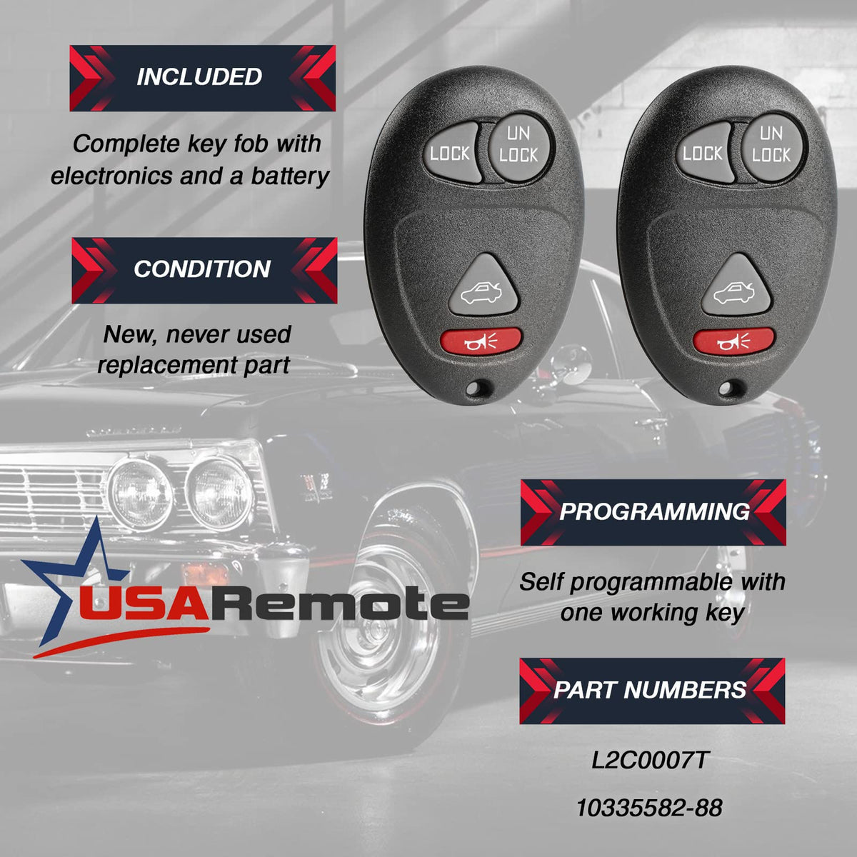 Replace Your Lost Or Broken Keyless Entry Key Fob Remote With A Usaremote Fobfits Pn: L2C0007Tp>Buick:2001-2005 Century2001-2004 Regal2002-2007 Rendezvousoldsmobile:2001-2002 Intriguepontiac:2001-2005 Aztek2001-2003 Grand Prixp>This Is A Replacement Aftermarket Part