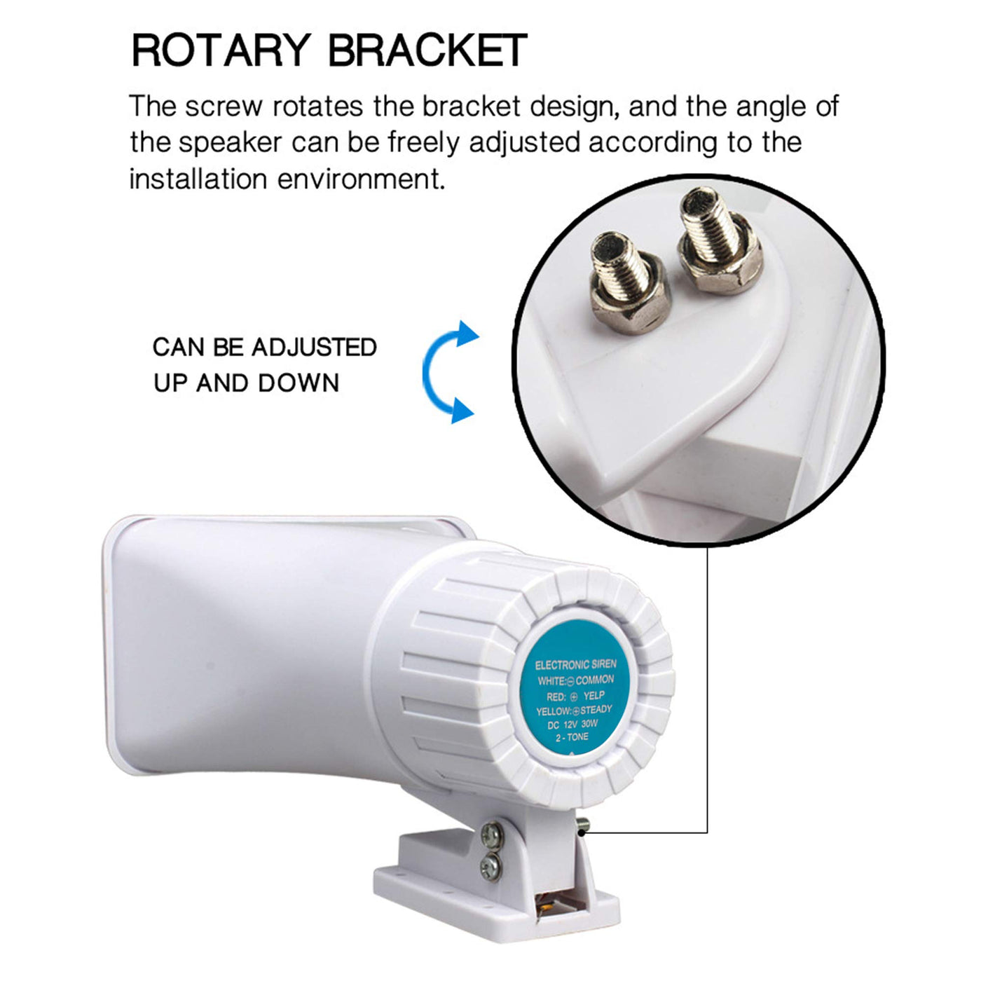 Kllsmdesign 30W Alarm Siren ,Dual Tone Outdoor Self Contained Electric Security Ring Siren With Bracket,6 12V Dc 1.1Ah 130Db 8 X 5.5 X 9 Inch For Car Home Doorbell Security Protection System,White