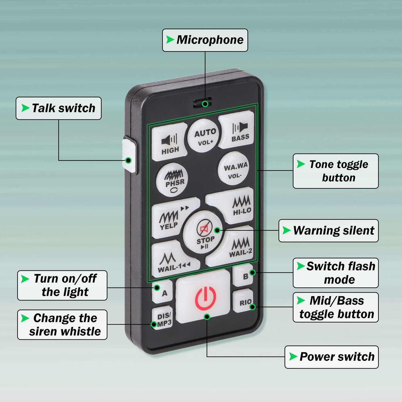 Q: Can I control the PA System remotely?A: Yes, the PA System includes a wireless remote that allows you to switch between 20 different warning tones from up to 15 meters away from the vehicle.