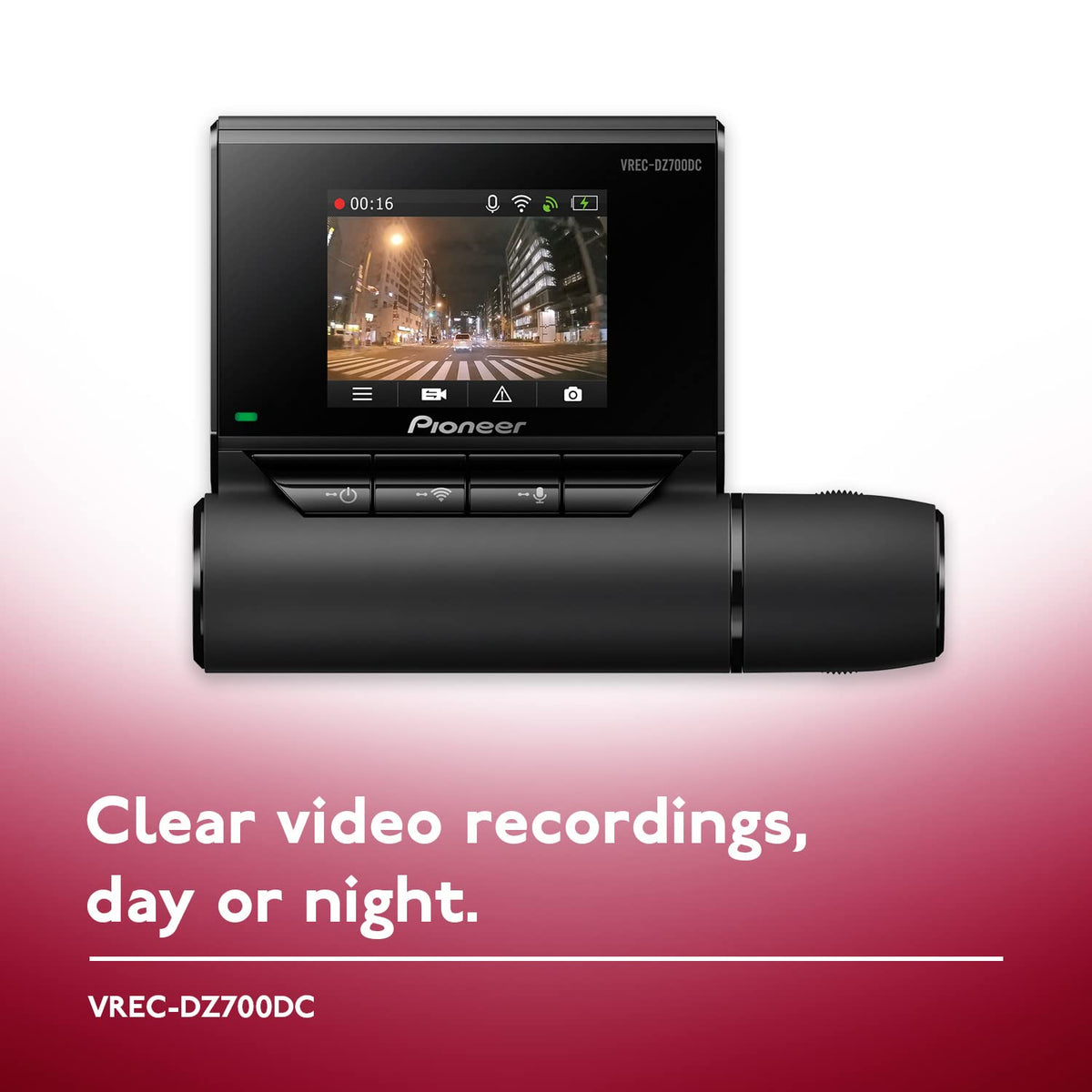 Q: What is the video quality of the Pioneer VREC-DZ700DC dash camera?A: The Pioneer VREC-DZ700DC records in Full HD 1080p quality, ensuring clear and detailed video footage of both the front and rear of your vehicle.