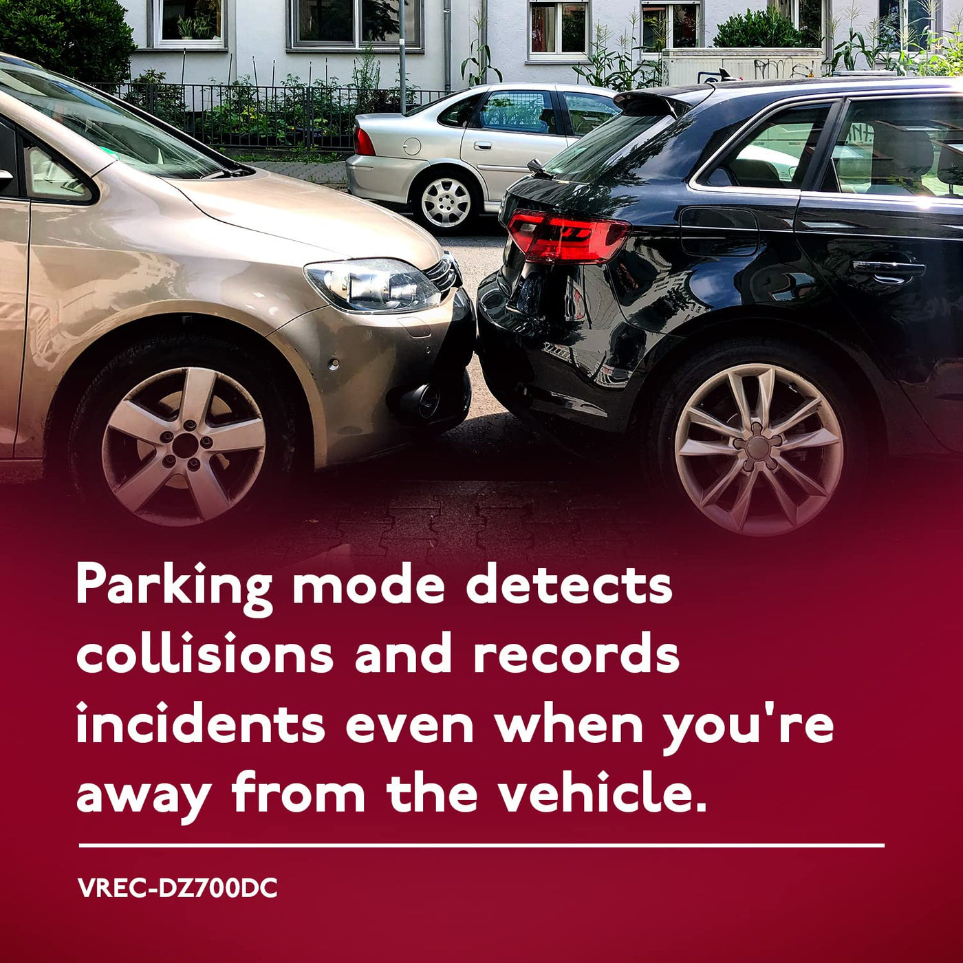 Q: How does the Parking Mode work in this dash camera?A: The Parking Mode allows the dash camera to monitor your vehicle even when parked. It uses a built-in 3-axis G-Force motion sensor to detect vibrations and automatically captures video 20 seconds before and after an incident.