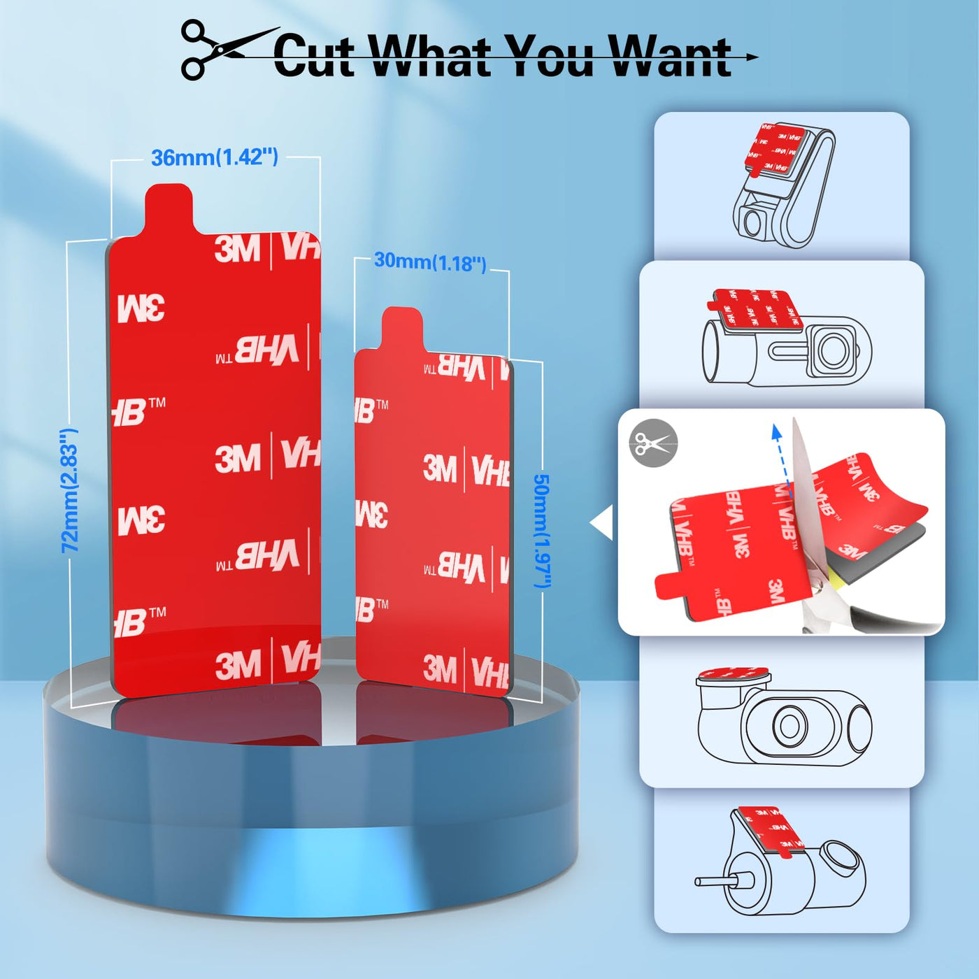 Q: Can I cut the adhesive pads to fit my specific dash cam model?A: Absolutely! The pop-tech adhesive pads can be easily cut to any size or shape, allowing for customization to fit various dash cam models, except for circular suction cup designs.