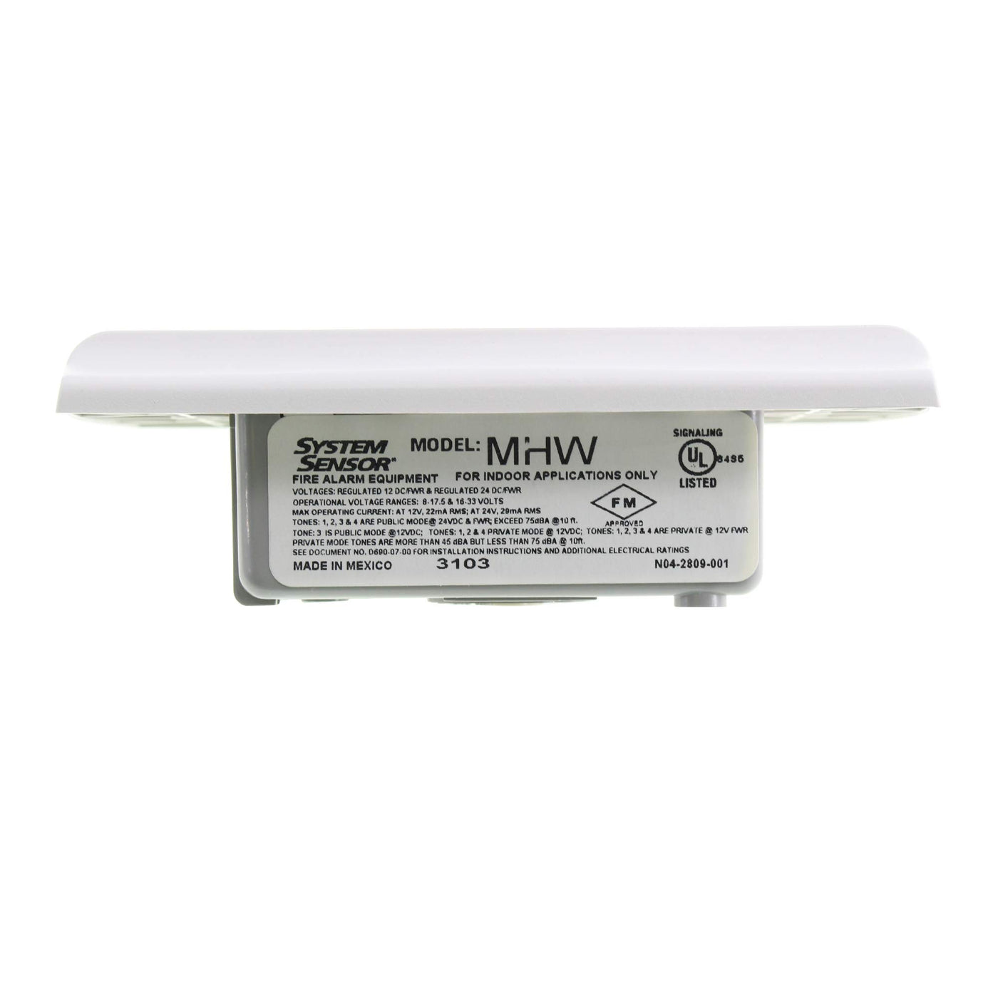 System Sensor Mhw Spectralert Mini Horn, Wall Mount, 12/24V, White