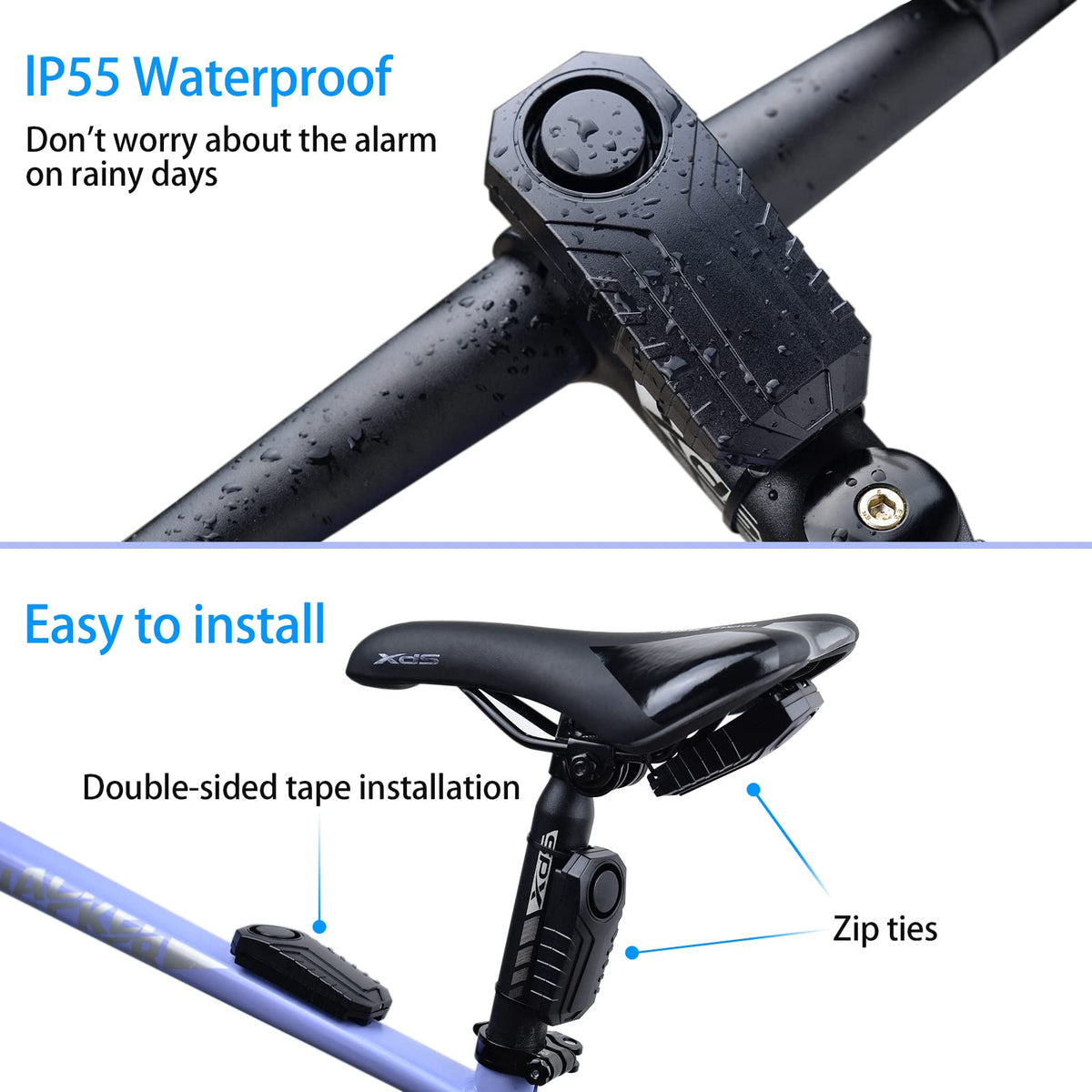 Q: Is the bike alarm waterproof?A: Yes, the USUPERINK Wireless Bike Alarm is rated IP55 waterproof, making it suitable for outdoor use and able to withstand various weather conditions.