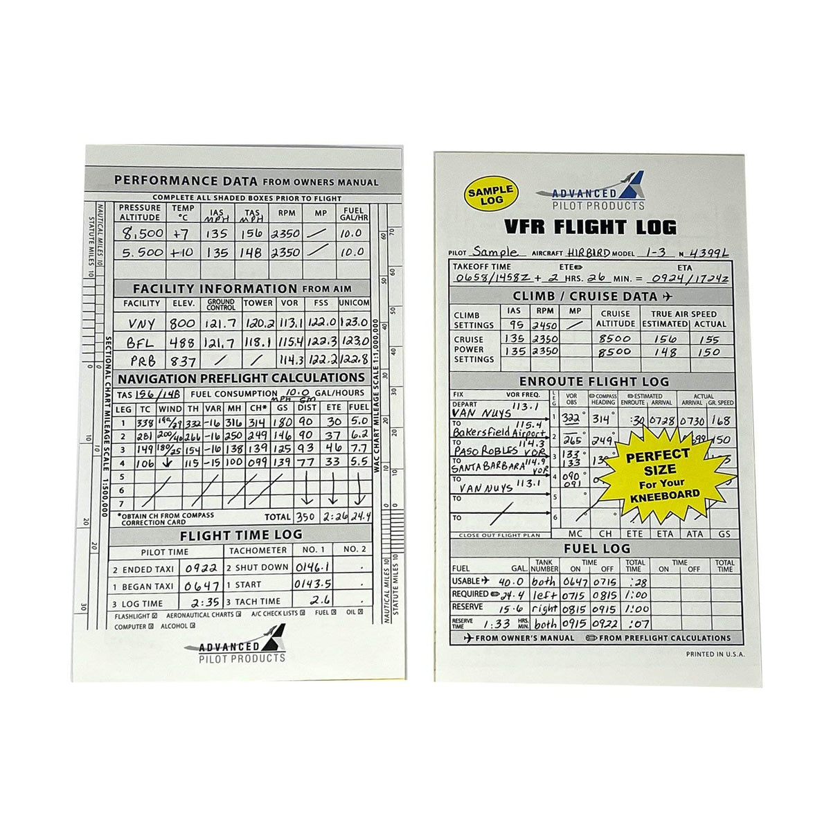 Q: What is included in the Advanced Pilot Products VFR Flight Log Pad?A: The Advanced Pilot Products VFR Flight Log Pad includes detailed instructions for flight planning, grids for climb and cruise data, an en route flight log, a fuel log, performance data, facility information, navigation pre-flight calculations, and a flight time log. Each pad contains 30 sheets.